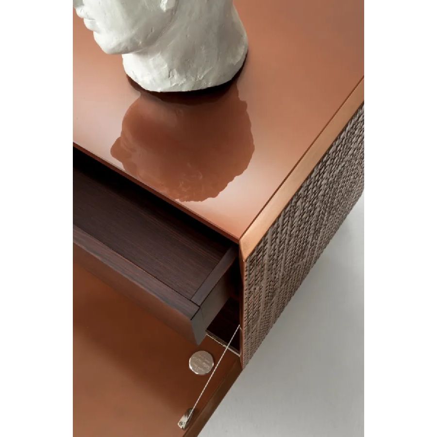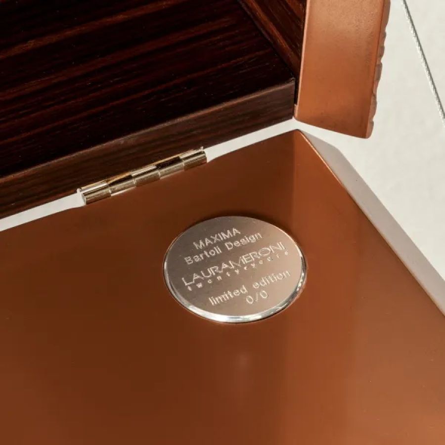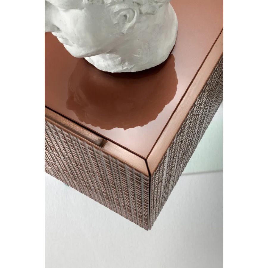 Equipped with 2 fully extractable drawers, it is available with a liquid metal copper, tin, bronze or 9k gold finish, as well as in the suspended version.