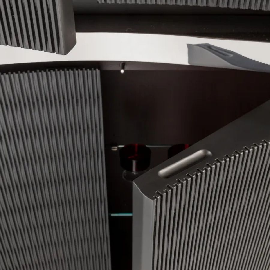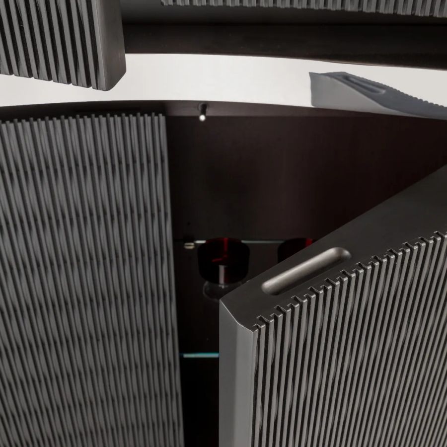 Surface decorated with the iconic Infinity honeycomb geometric design and integrated top in polished steel.