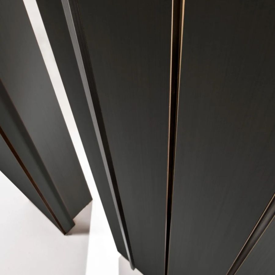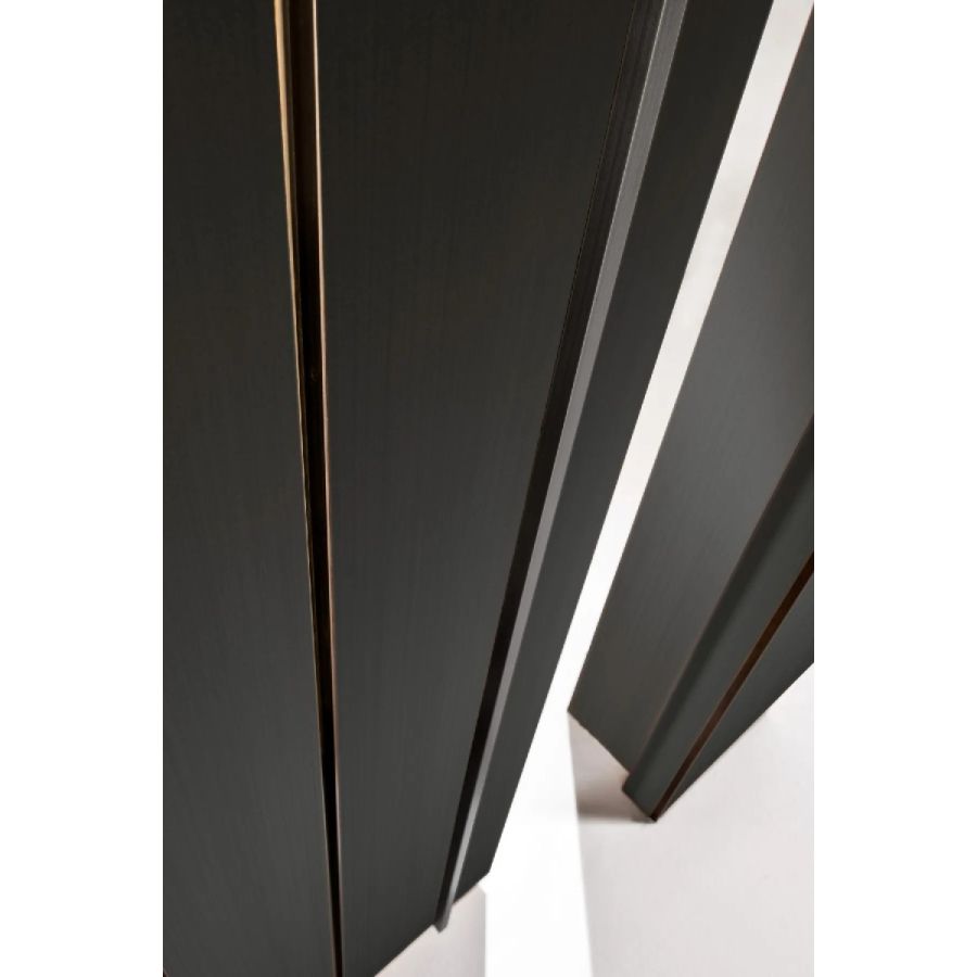 Customizable in all the woods of the collection, in special wood, in dyed, brushed matt lacquered or glossy lacquered wood in all RAL/NCS colours, in Bronze Delabré and in Brown glossy ash.