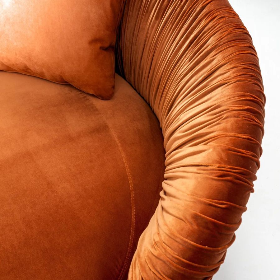 Available in leather, in matt 'Lario' or shiny 'Roxana' velvet or in fabric, and with custom-made decorative cushions.