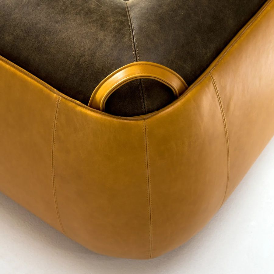 Available in leather, in matt 'Lario' or shiny 'Roxana' velvet or in fabric, and with custom-made decorative cushions.
