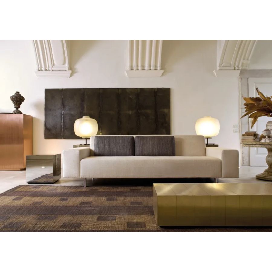 Part of the Orchestra System collection, it can be customized in leather, in matt 'Lario' or shiny 'Roxana' velvet, and with custom-made decorative cushions. It is also available in the bench and in the armchair versions.