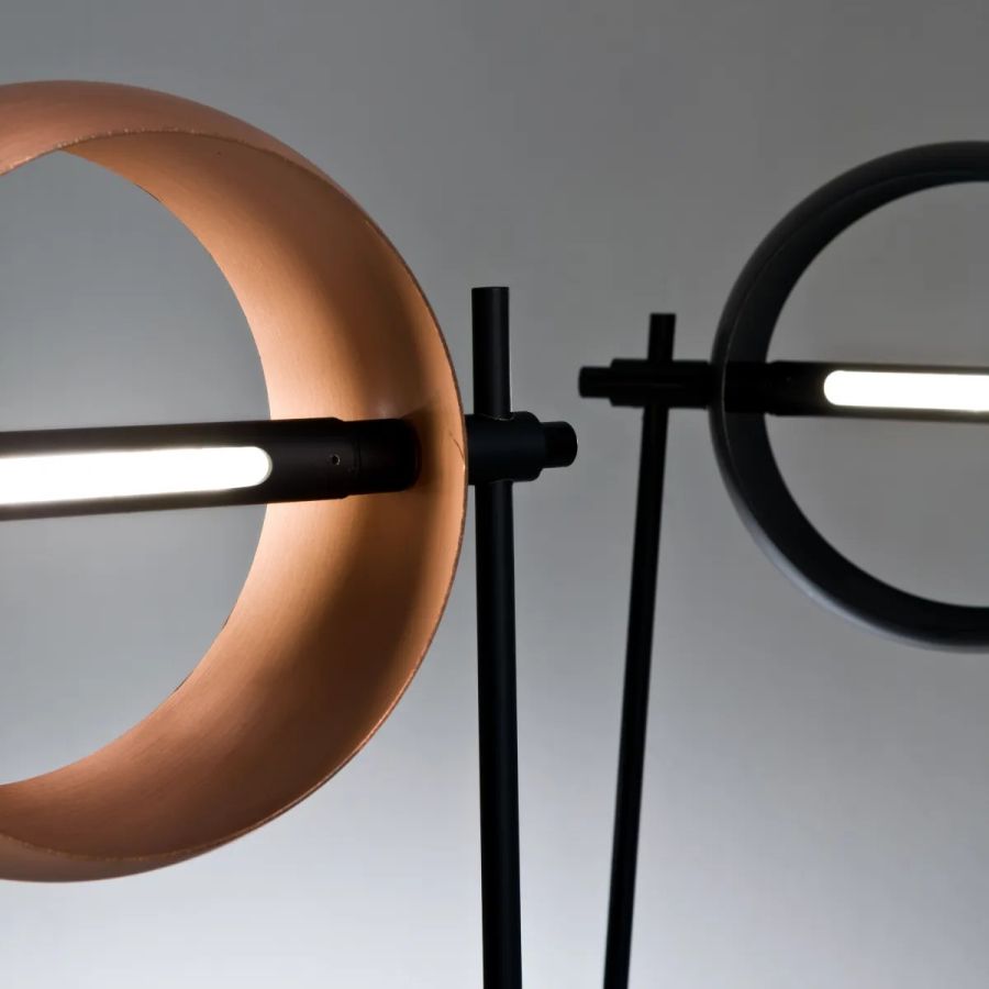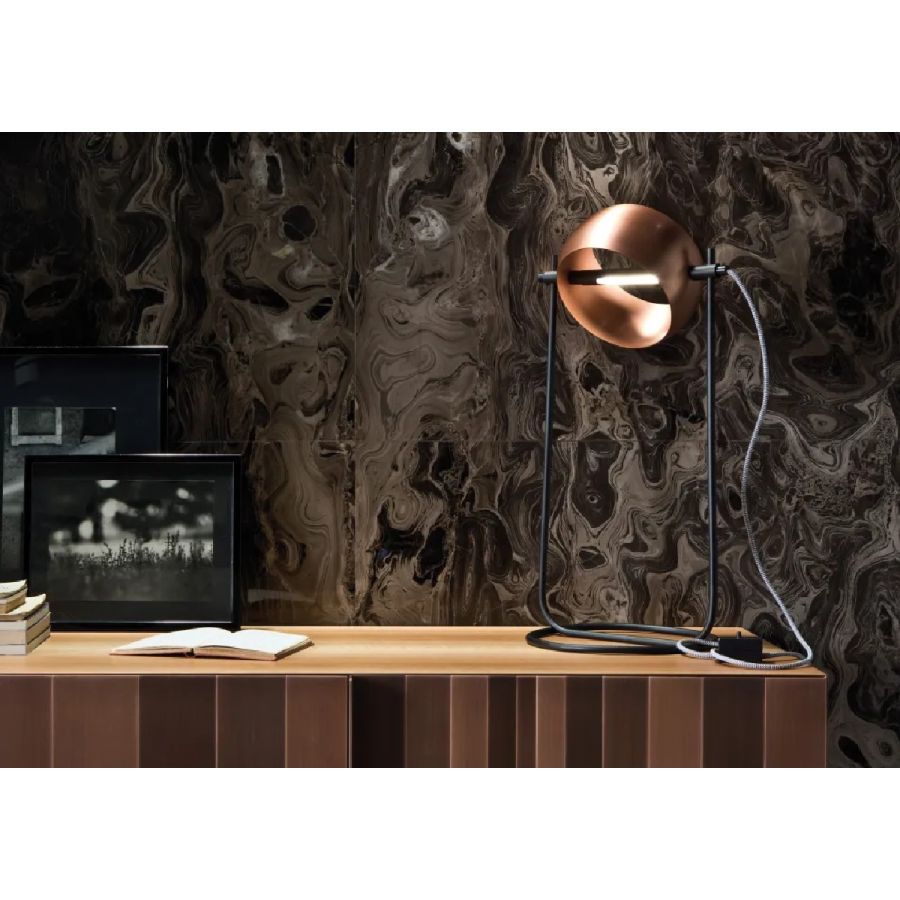 Available in satin copper or black iron Cenere.