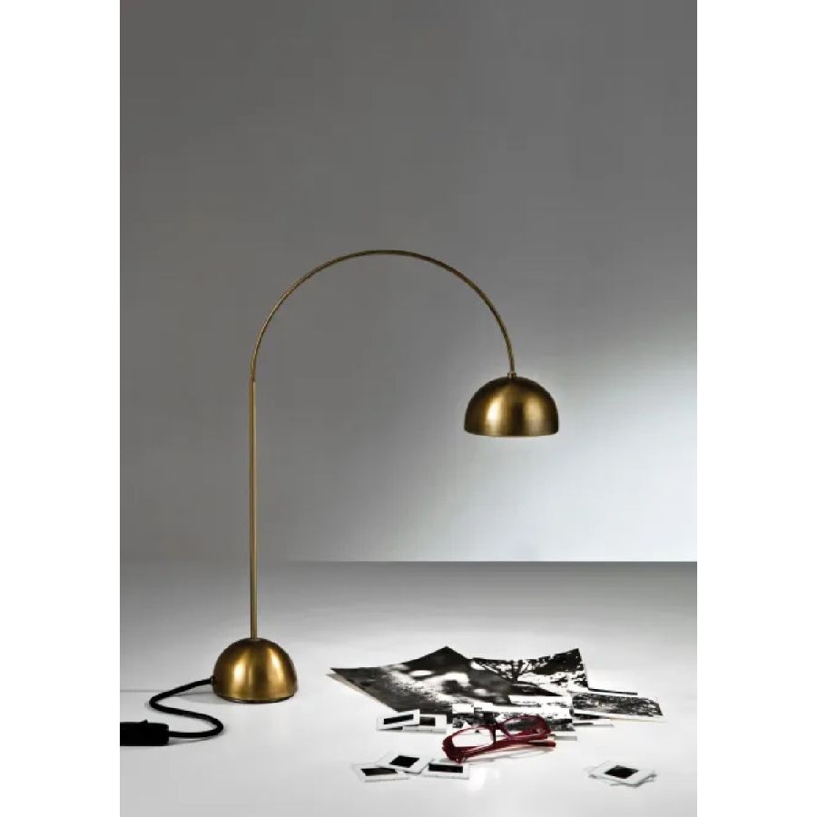 Rotating table lamp in dark oxidized brass with two-pin LED bulb.