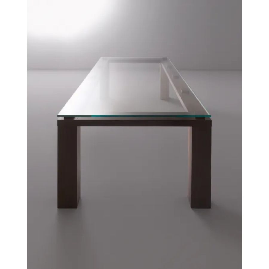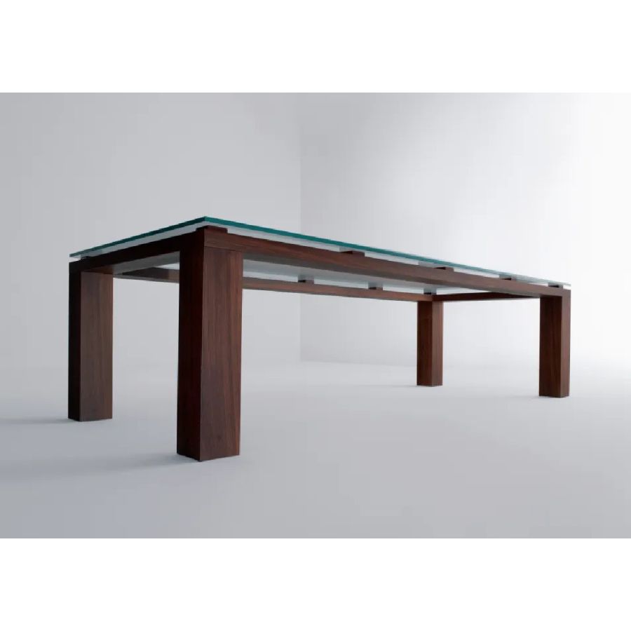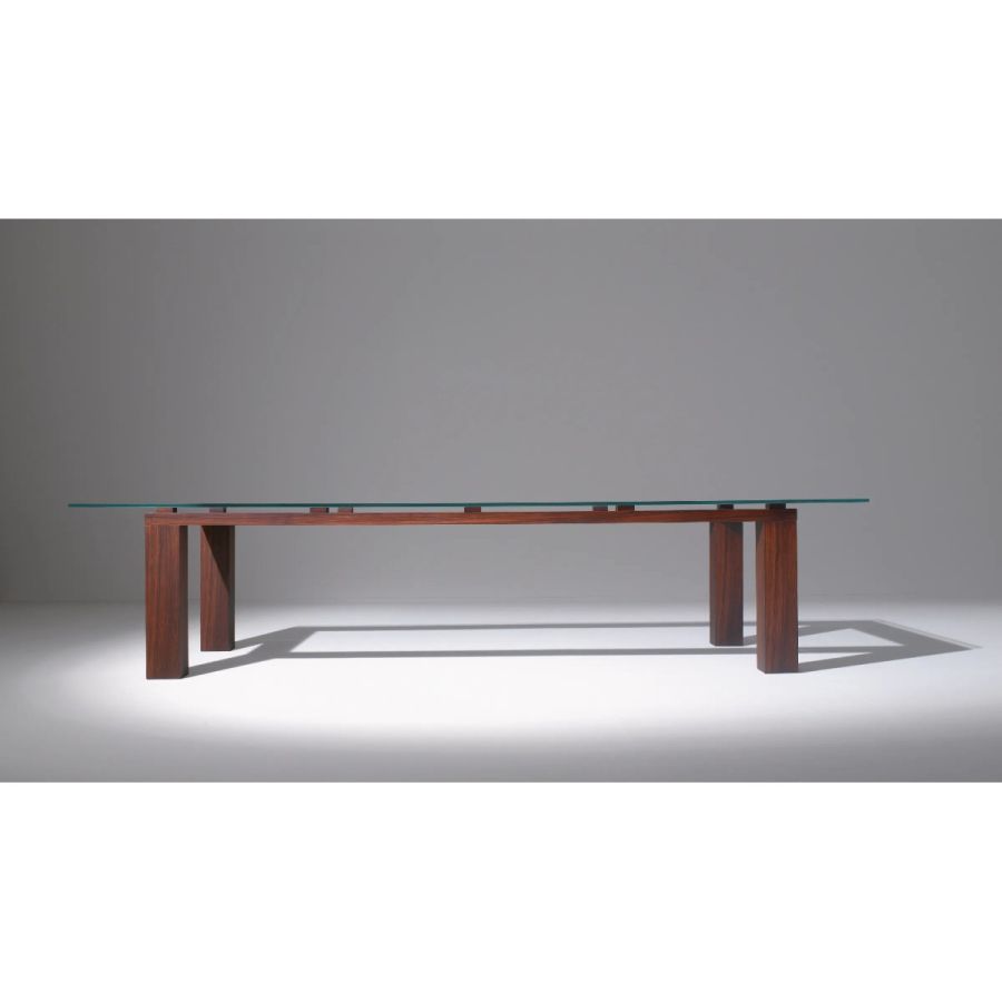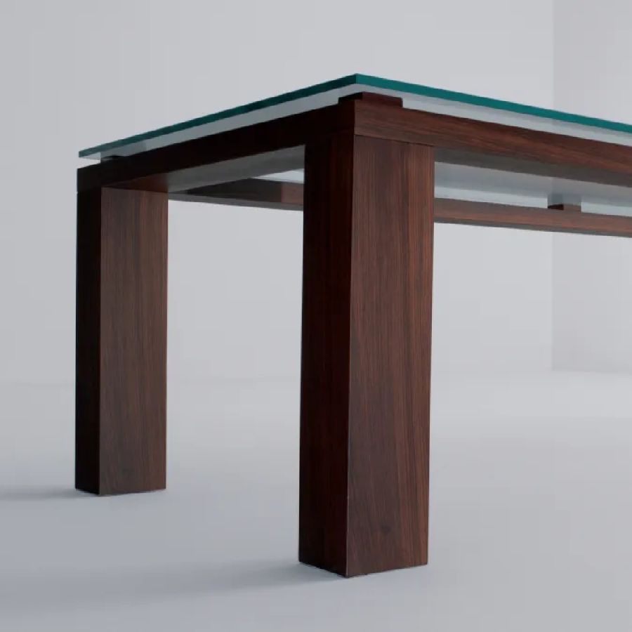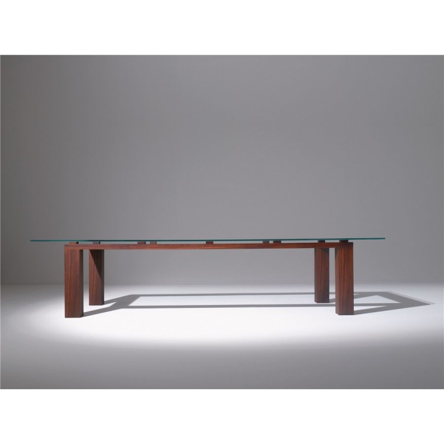 Table with wooden structure and glass top with a 15 millimetres thickness. Available in the square or rectangular version, and in special dimensions.