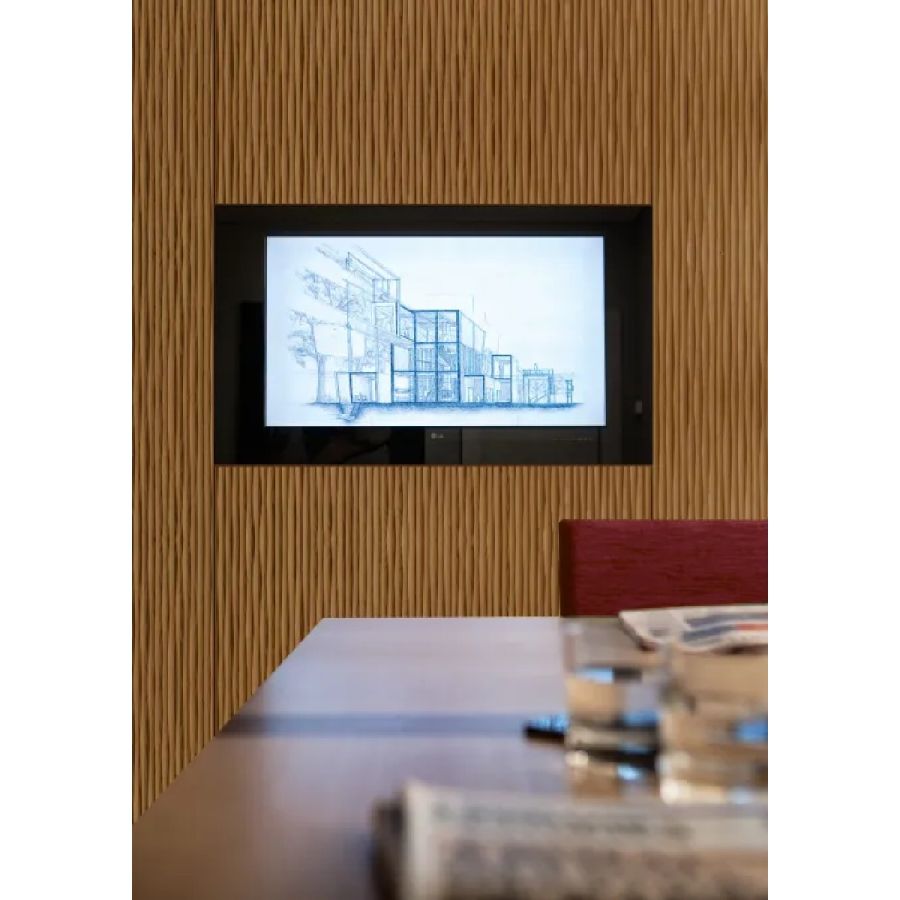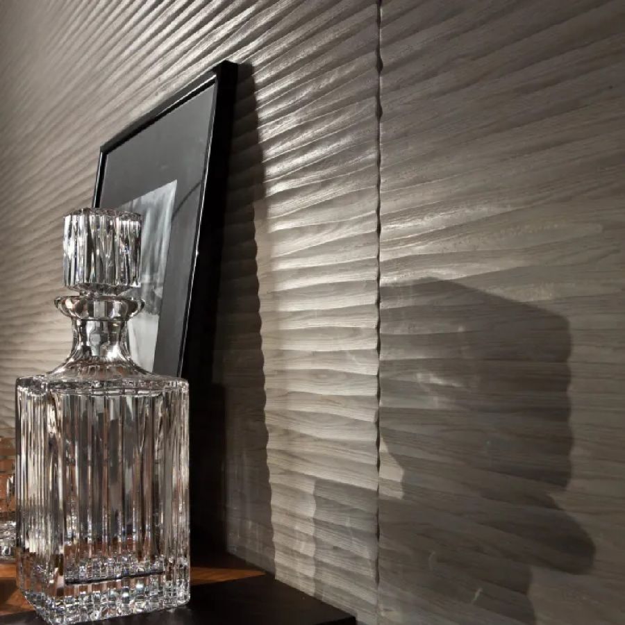 Made to measure wall panels in wood with horizontal or vertical Onda carving on the visible side.