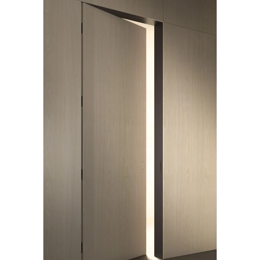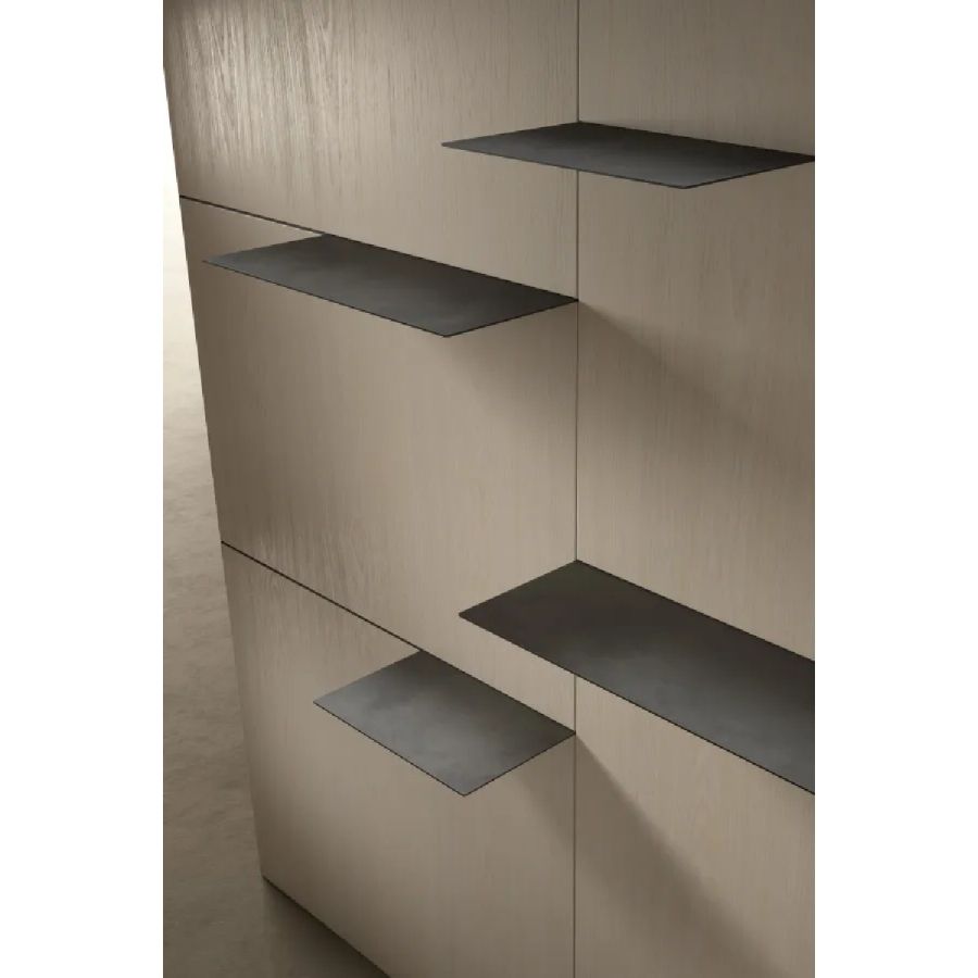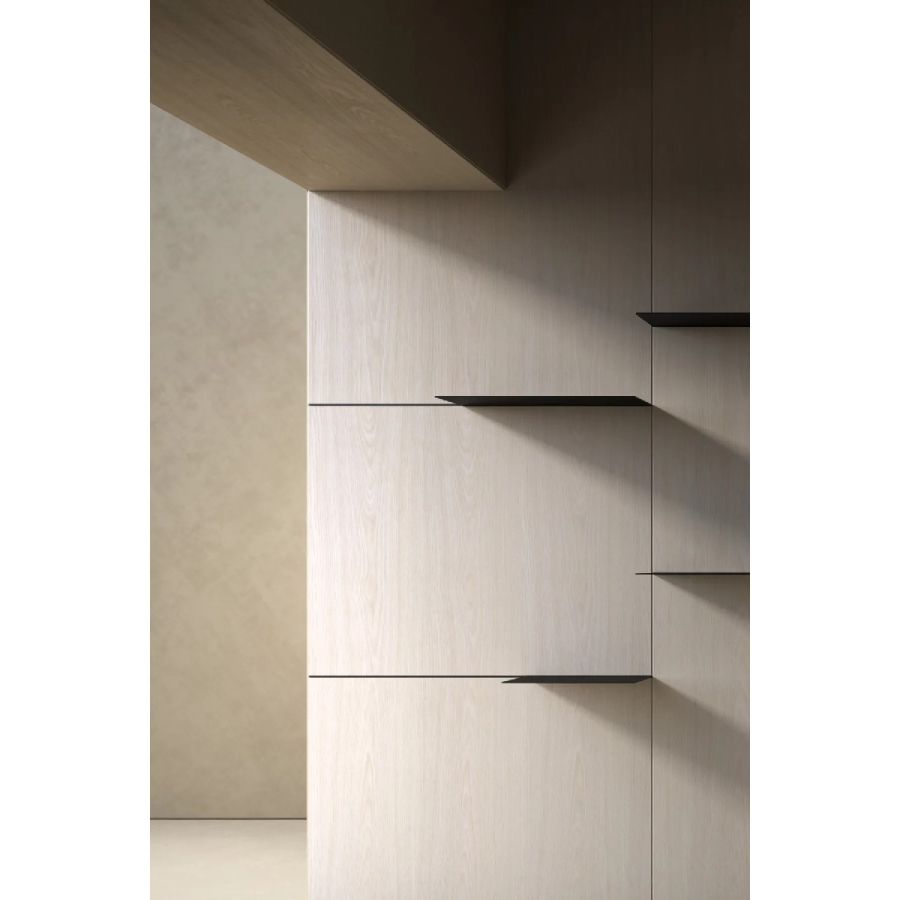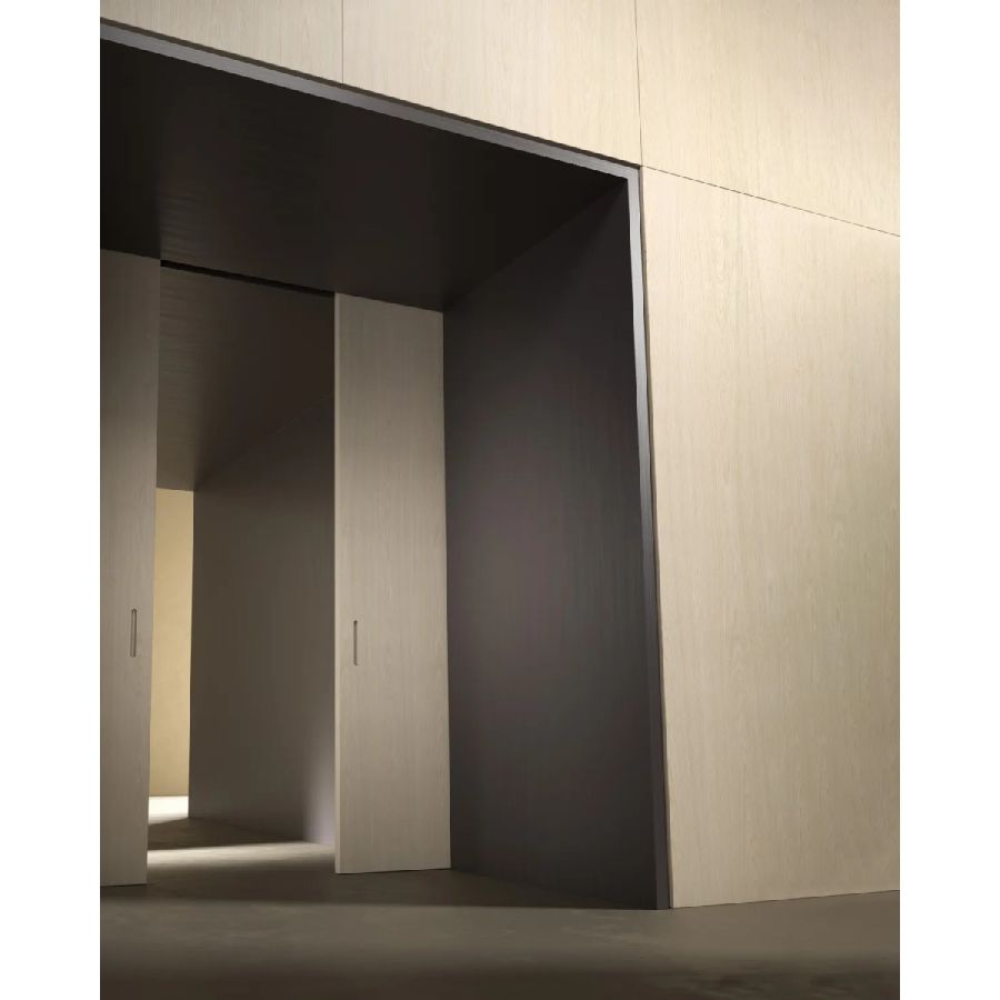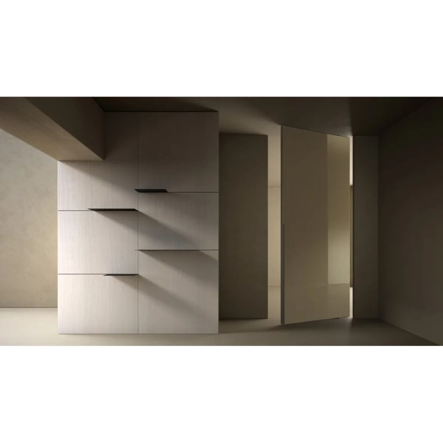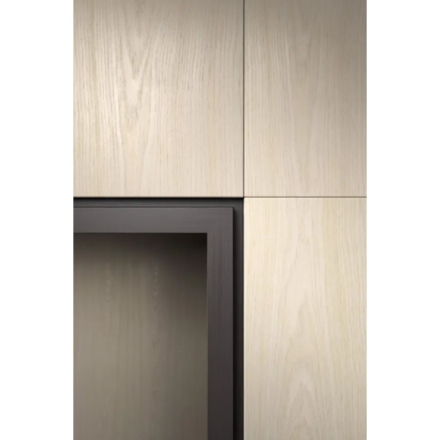 Available in all Laurameroni woods with horizontal or vertical grain on the visible side, in special wood, in aniline-dyed oak, in dyed, brushed matt lacquered and glossy lacquered wood in all RAL/NCS colours. Also available in fabric.