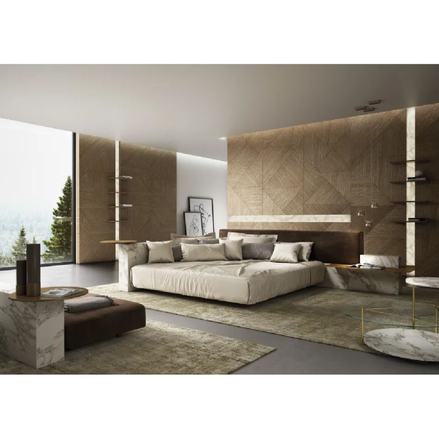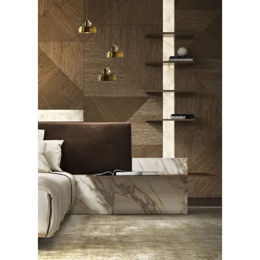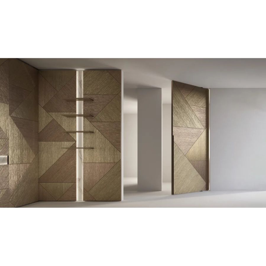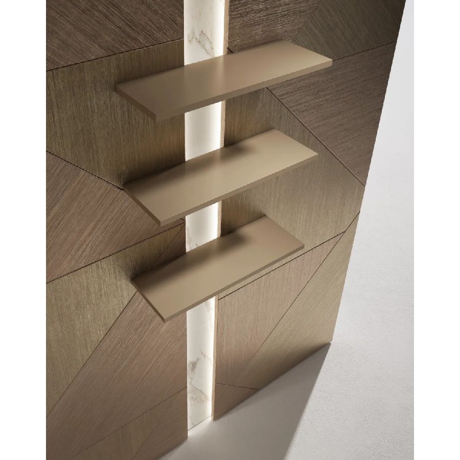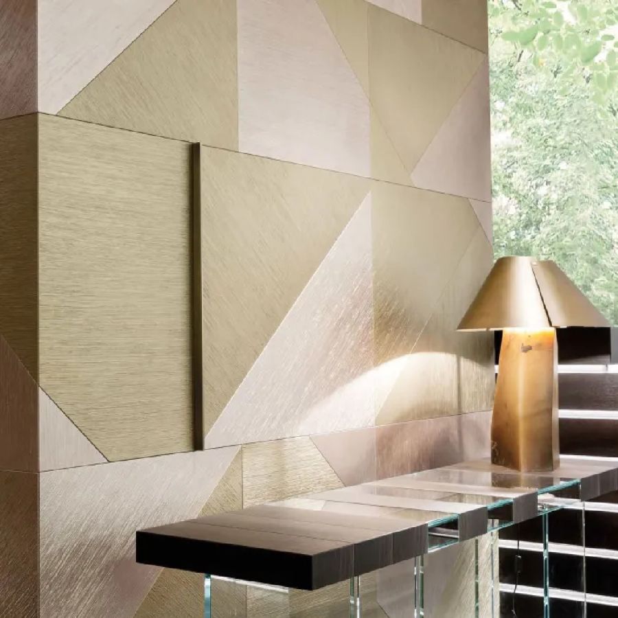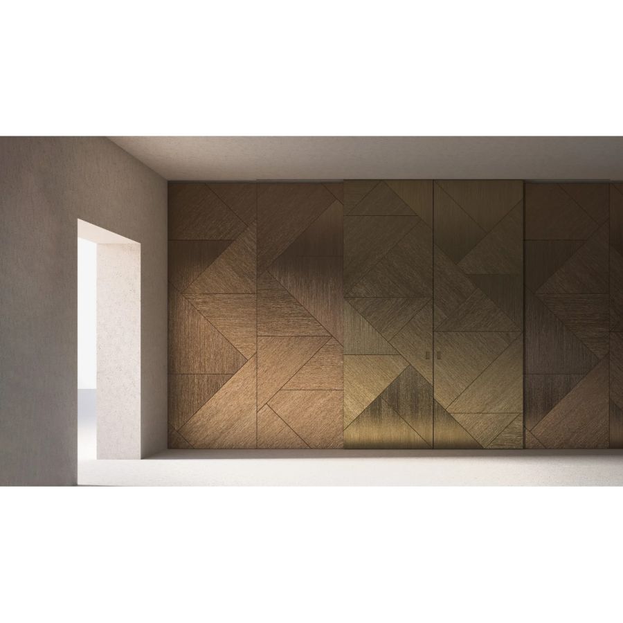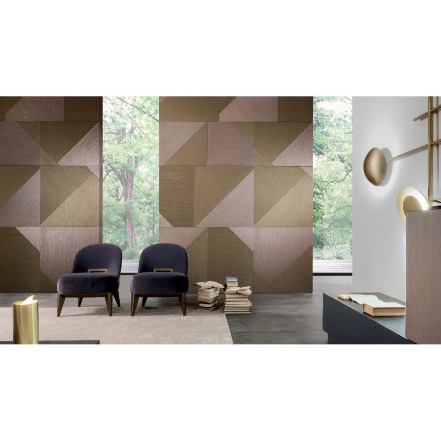 The Tatami finish is available in Bronze and Anodized Gold, and Silver and Nickel finishes, both in the monochromatic and bichromatic versions.