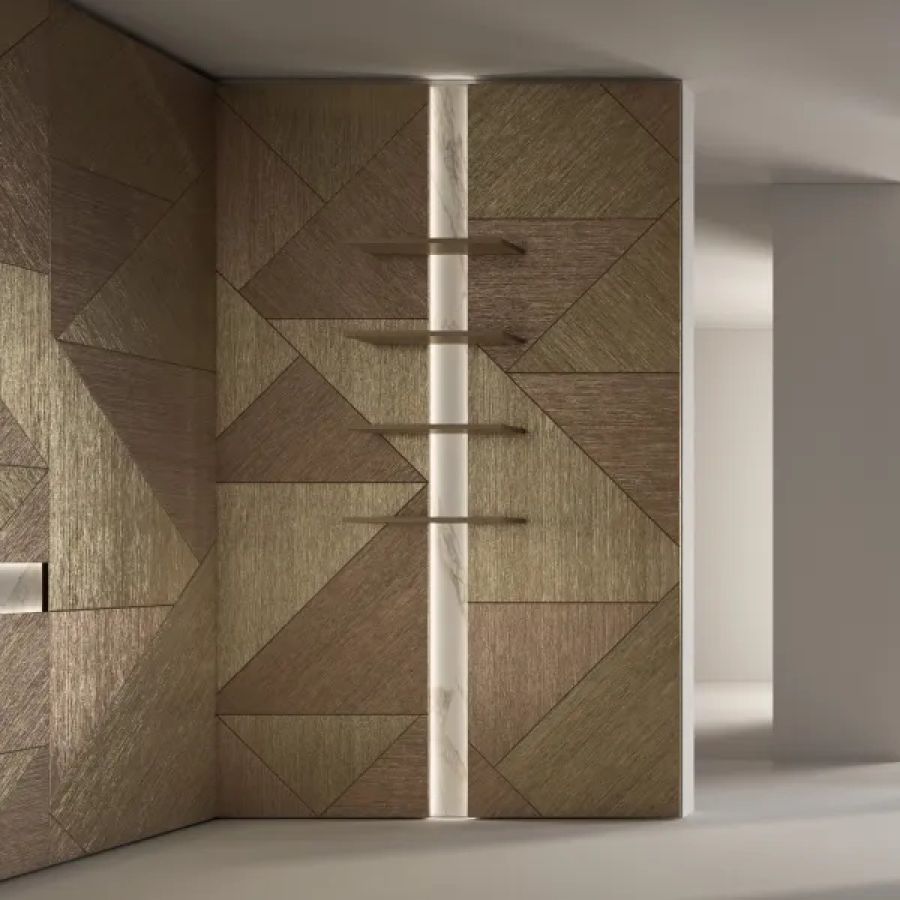 Three-dimensional wall panels, characterized by the juxtaposition of modules with three different designs, available in customized combinations.