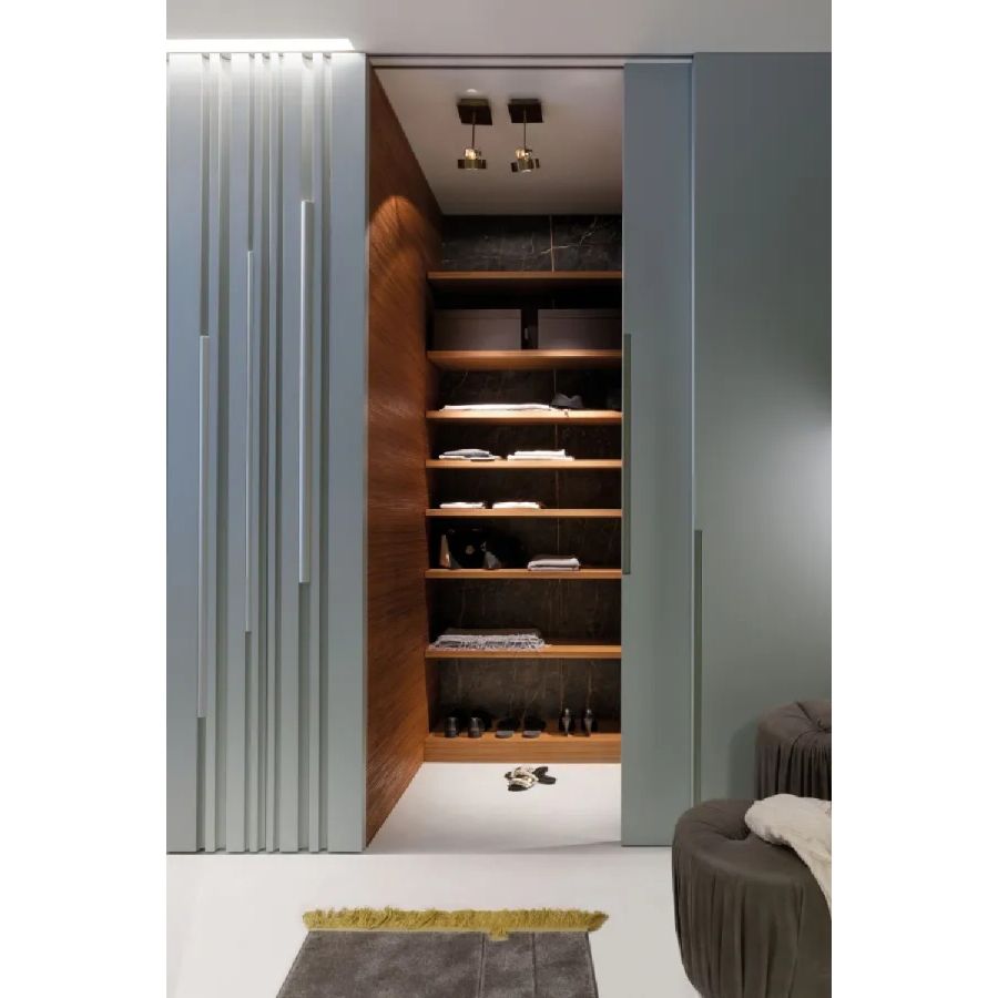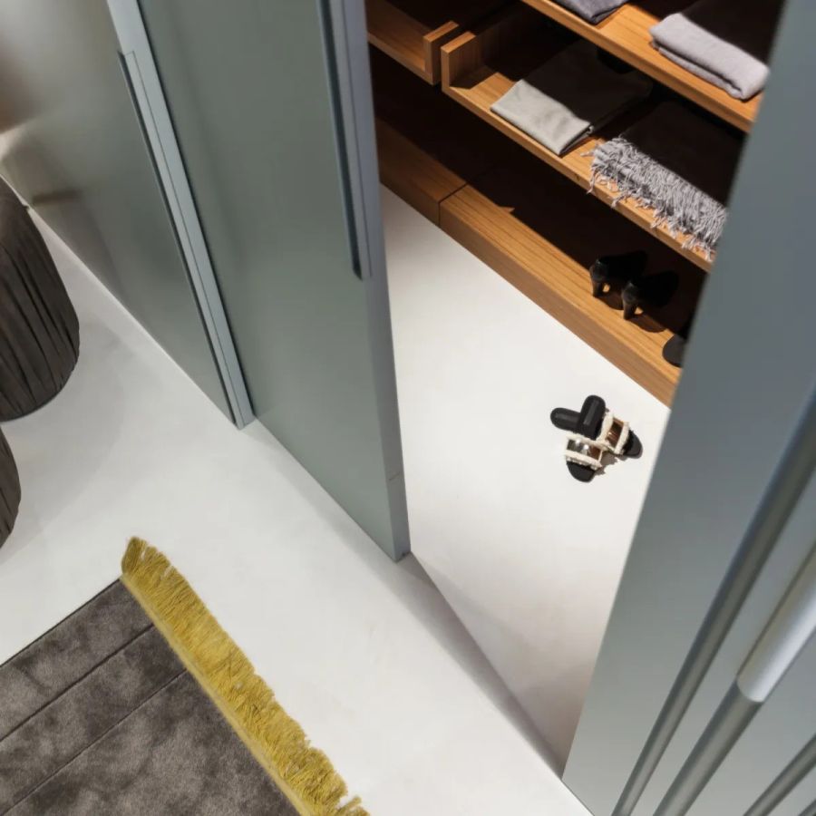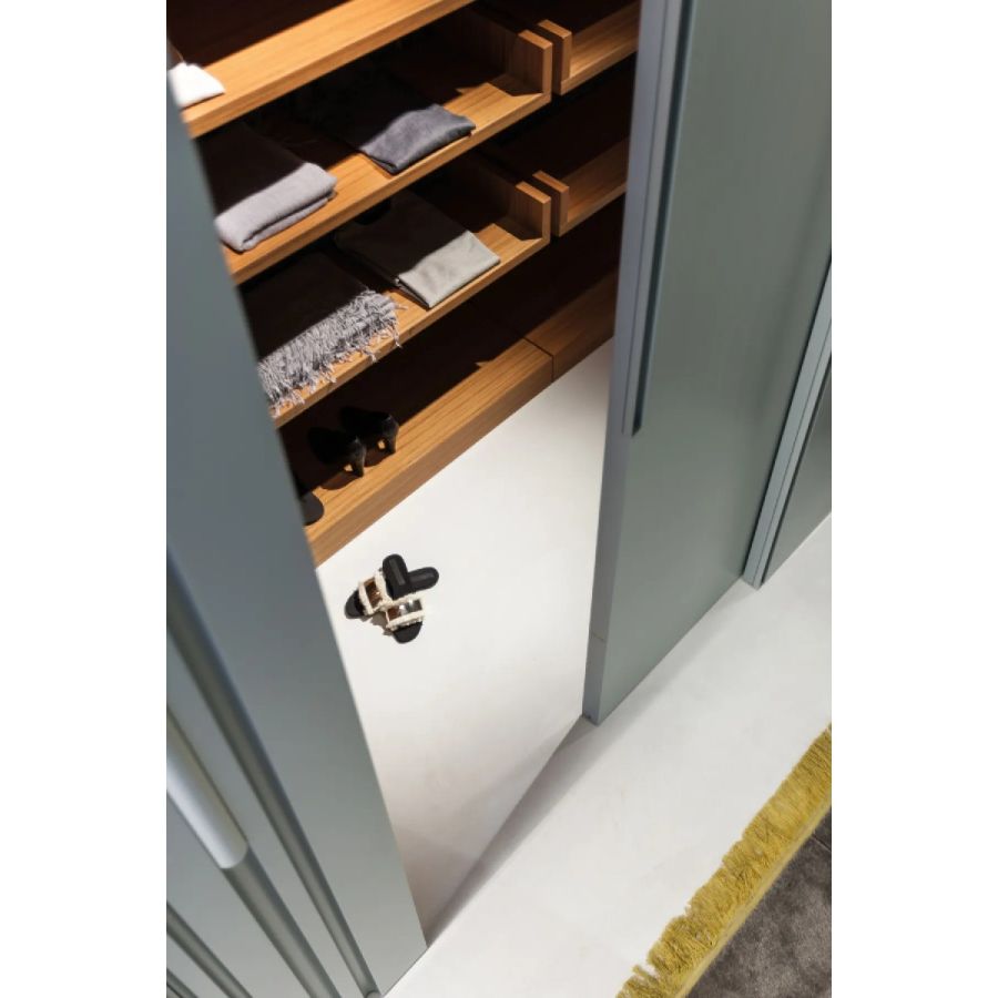 Customizable in matt lacquered wood in all RAL colours, the Bamboo wardrobe system is available in combination with wall panels and integrated doors.