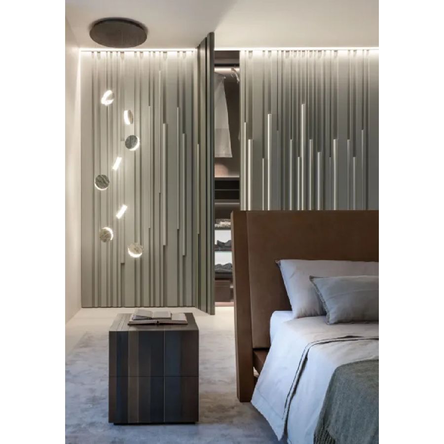 Made to measure wardrobe defined by sequences of decorative channels and elliptical bars customizable in size and finishes. Available tailor-made with customizable accessories, equipment and internal finishes, and with integrated LED lighting.