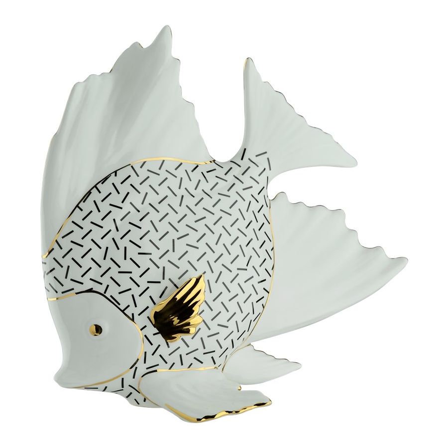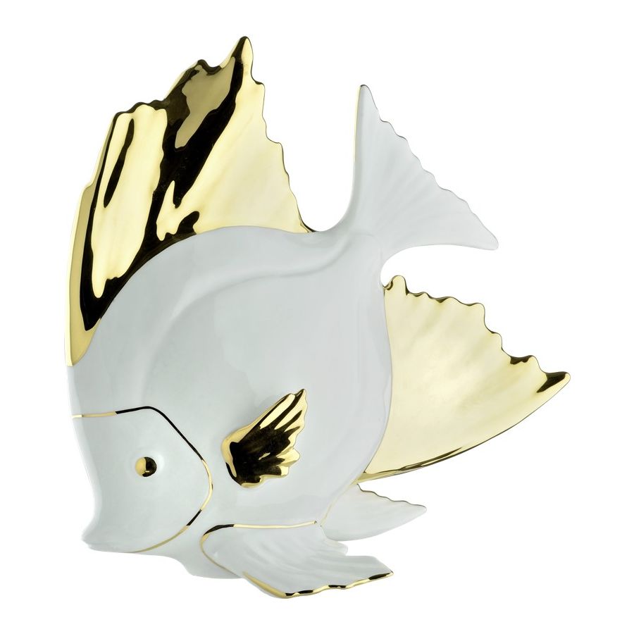 Angel Fish Made of Porcelain 7030 by Le Porcellane, made entirely of porcelain and hand painted. A piece of the elegant and refined "Animali" collection. 100% Made in Italy product.