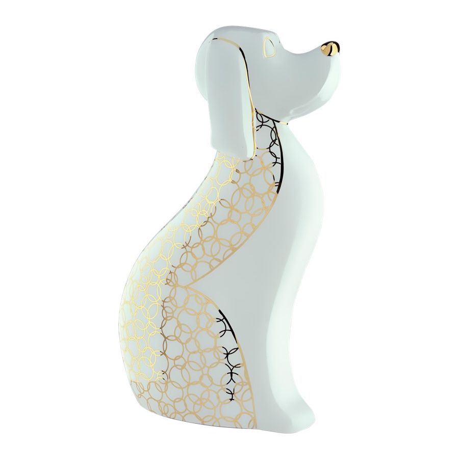 Dog Italian Porcelain 7018 by Le Porcellane, made entirely of porcelain and hand painted. A piece of the elegant and refined "Animali" collection. 100% Made in Italy product.