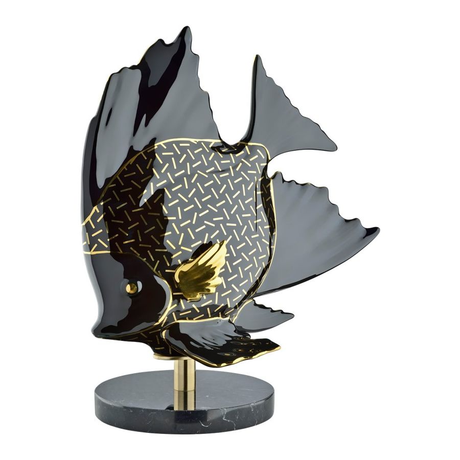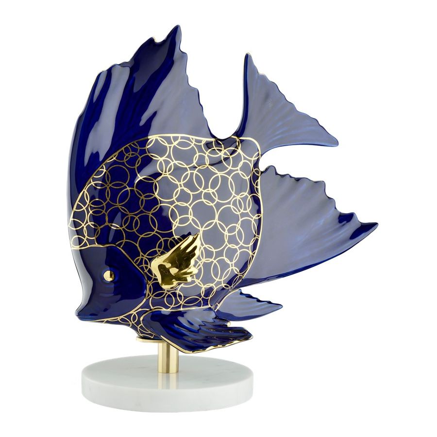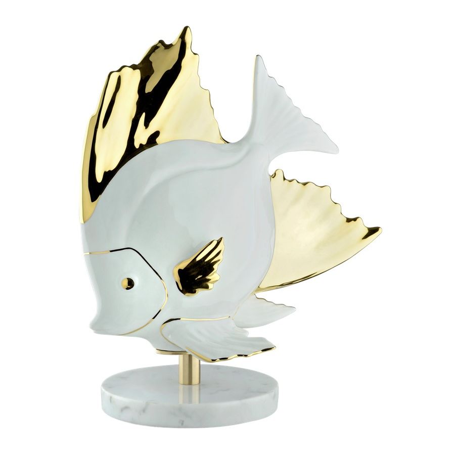 Marble Base Angel Fish Italian Porcelain 7032 by Le Porcellane, made entirely of porcelain and hand painted. A piece of the elegant and refined "Animali" collection. 100% Made in Italy product.