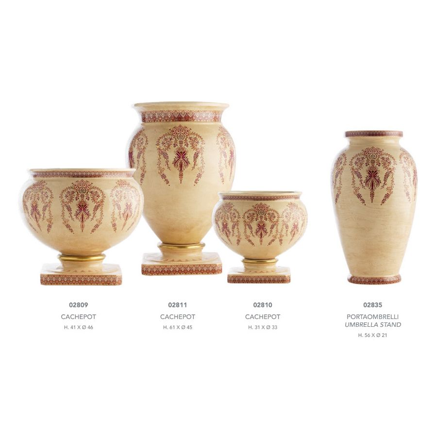 Made of Porcelain Cachepot 02811 by Le Porcellane, made entirely of porcelain and hand painted. A piece of the elegant and refined "Bisanzio" collection. 100% Made in Italy product.