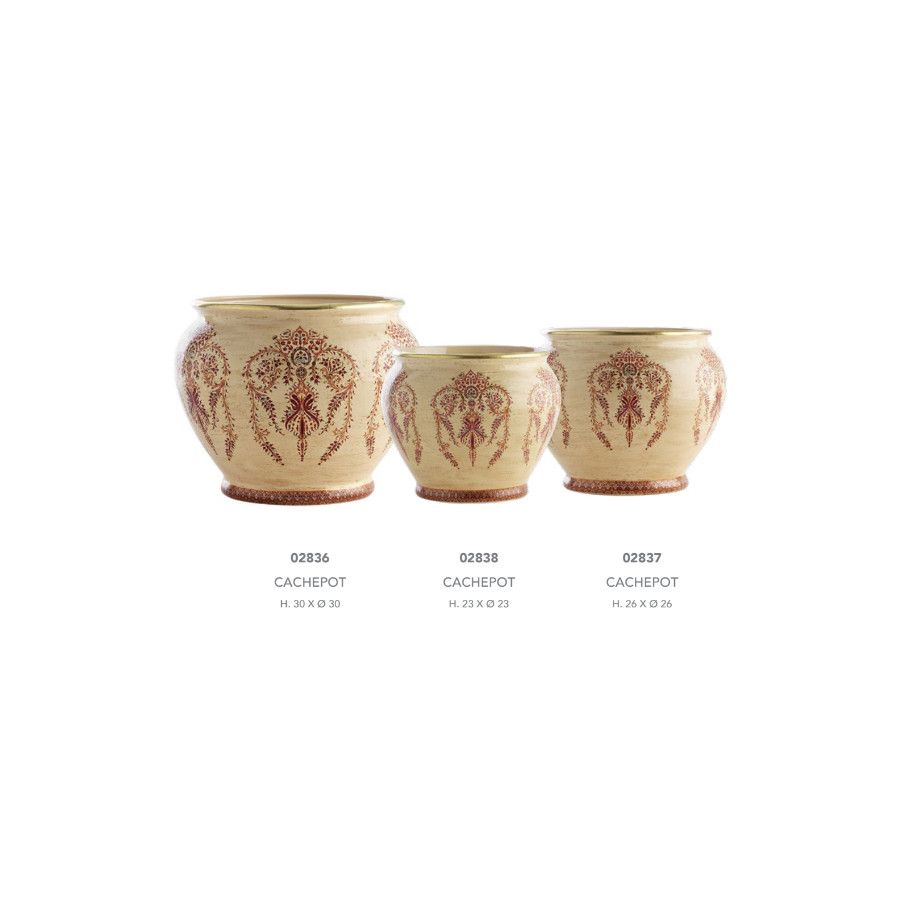 Italian Porcelain Cachepot 02838, 2837, 2836 by Le Porcellane, made entirely of porcelain and hand painted. A piece of the elegant and refined "Bisanzio" collection. 100% Made in Italy product.