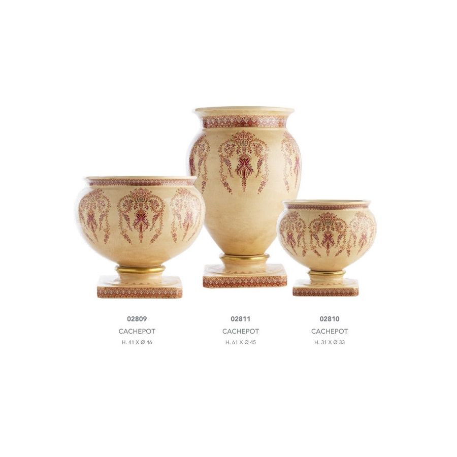 Porcelain Cachepot 2810, 2809 by Le Porcellane, made entirely of porcelain and hand painted. A piece of the elegant and refined "Bisanzio" collection. 100% Made in Italy product.
