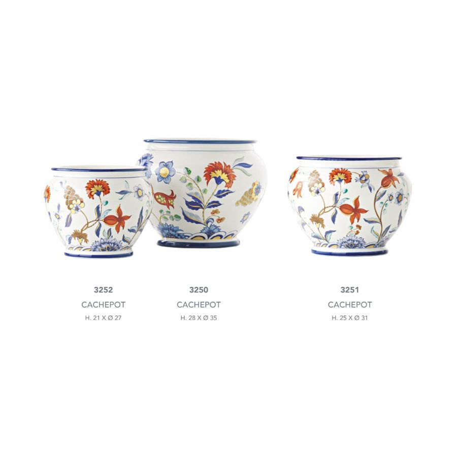 Handmade Porcelain Cachepot 3252, 3251, 3250 by Le Porcellane, made entirely of porcelain and hand painted. A piece of the elegant and refined "Fiori Policromo" collection. 100% Made in Italy product.