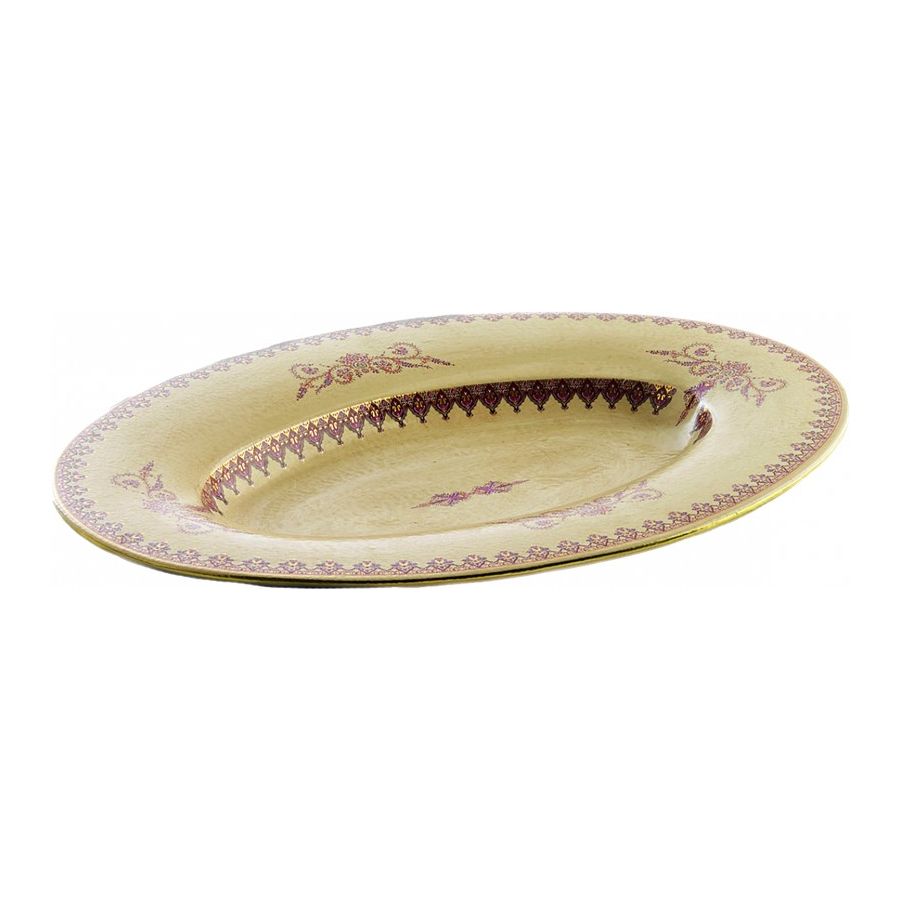 Porcelain Oval Tray 02806 by Le Porcellane, made entirely of porcelain and hand painted. A piece of the elegant and refined "Bisanzio" collection. 100% Made in Italy product.