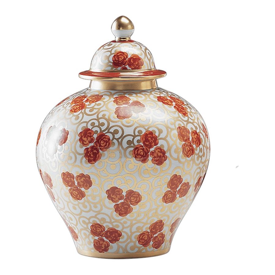 Potiche Italian Porcelain 4018, 4017, 4016 by Le Porcellane, made entirely of porcelain and hand painted. A piece of the elegant and refined "Rose Rosse" collection. 100% Made in Italy product.