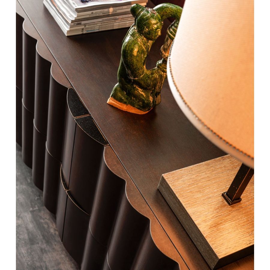 Modern chest of drawers with clean shape and waved fronts. Leon is an emotional and passional collection: every element reveals the intelligent drawing, the comfort and luxury essence of its design. Leon is an emotional and passional collection: every element reveals the intelligent drawing, the comfort and luxury essence of its design. The chest of 4 drawers and the bedside with 2 drawers are available in a wide range of finishings, and can be combined with a woodenplinth or iron legs. Matching perfectly with the bedside tables of the same collection, it creates an impeccable proposal for modern or contemporary bedrooms