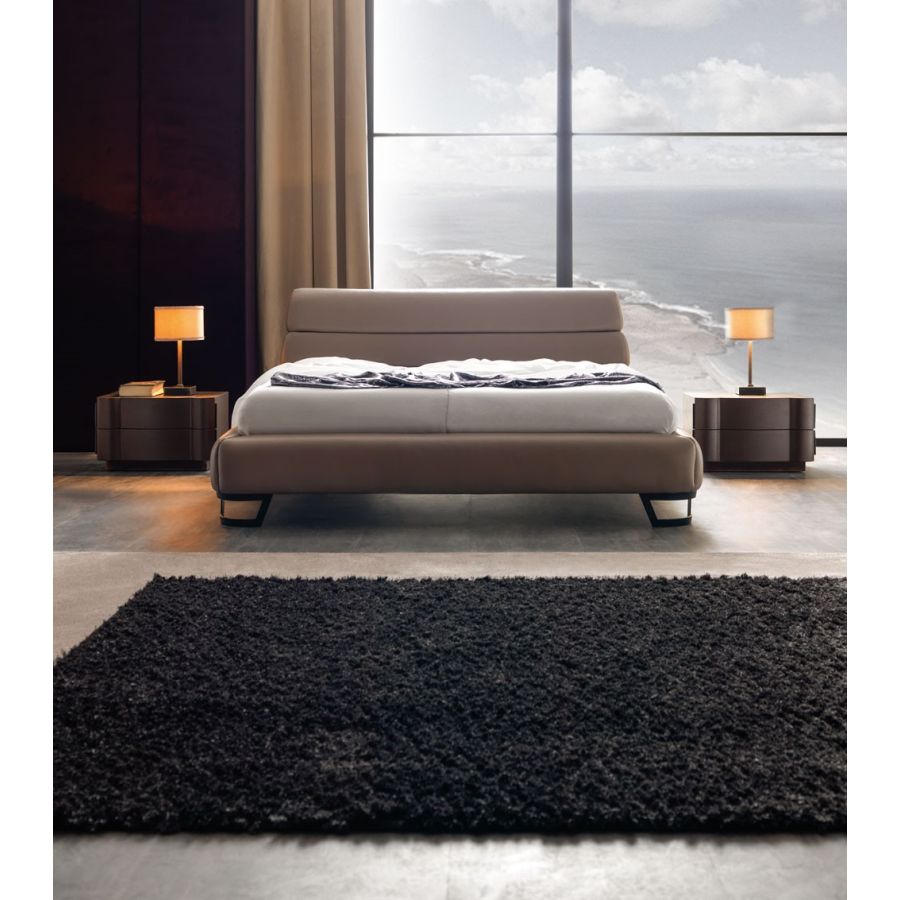 Modern Bedside Table with clean shape and waved fronts. Leon is an emotional and passional collection: every element reveals the intelligent drawing, the comfort and luxury essence of its design. The chest of 4 drawers and the bedside with 2 drawers are available in a wide range of finishings, and can be combined with a wooden plinth or iron legs. Matching perfectly with the Chests of the same collection, it creates an impeccable proposal for modern or contemporary bedrooms