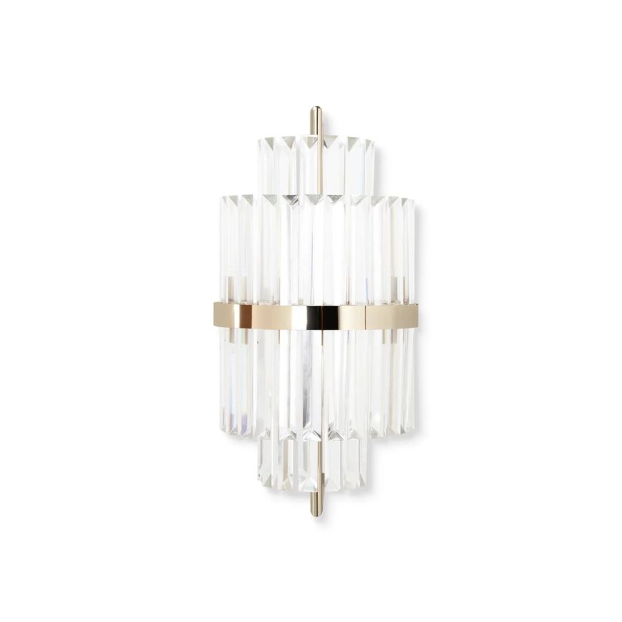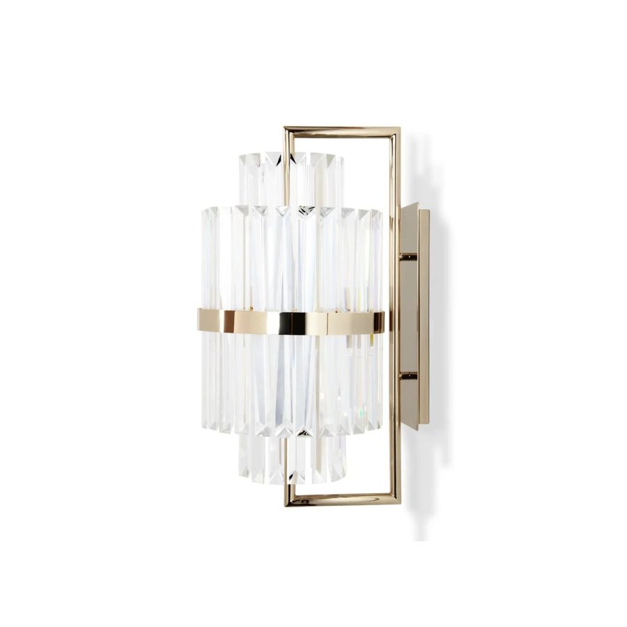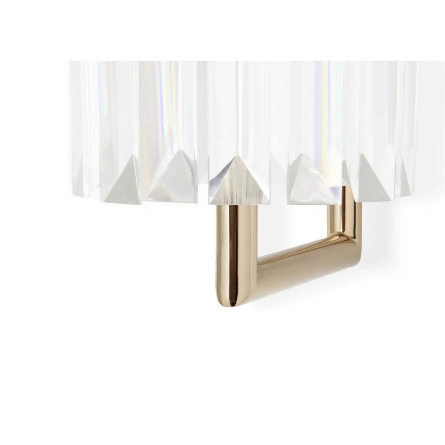 The Liberty II Wall Lamp is an elegant lighting solution for those who appreciate intricate details. Inspired by the Statue of Liberty, this wall light boasts a harmonious blend of crystal glass and brass that brings a modern feel to your project, whether hospitality or residential.