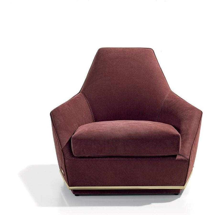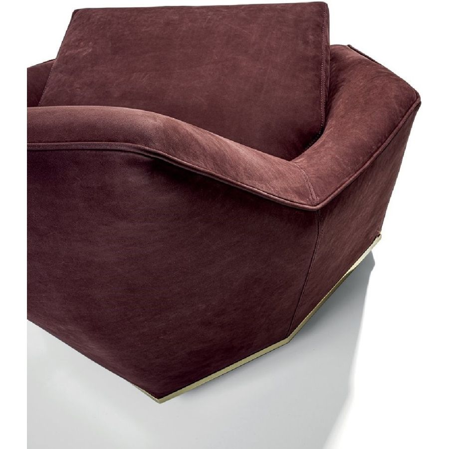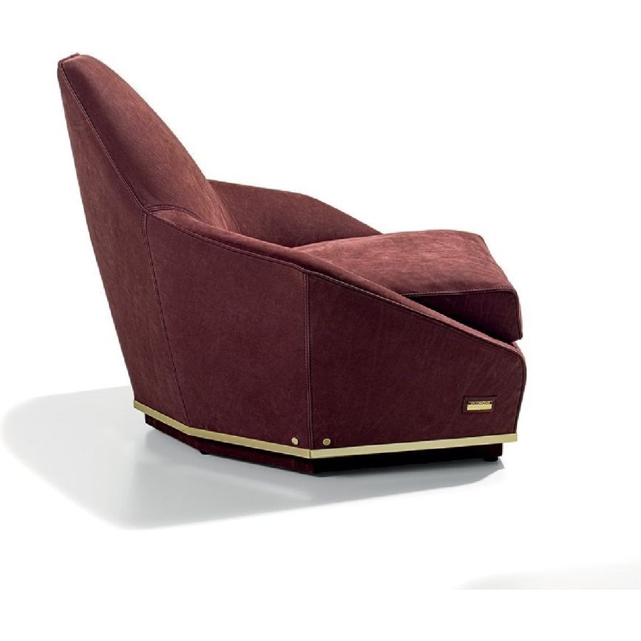 An enveloping armchair that offers a sense of intimacy and protection, and expresses great formal elegance through its perfectly calibrated proportions. With its important dimensions, it is suitable for a living room or a public area. Available in multiples, it becomes the ideal product for furnishing a lounge- bar with elegance and spirit. Its “spatial” lines and metal base recall the Nobu sofa.