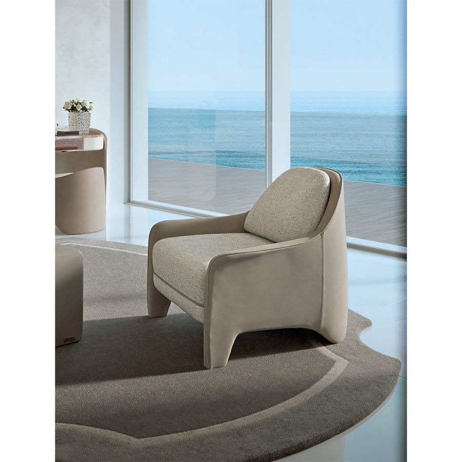 The Nora armchair has a cosy external shell covered in leather, that holds soft seat and backrest cushions. It integrates harmoniously into the bedroom, but can also be placed in any other room in the house to add style and elegance.