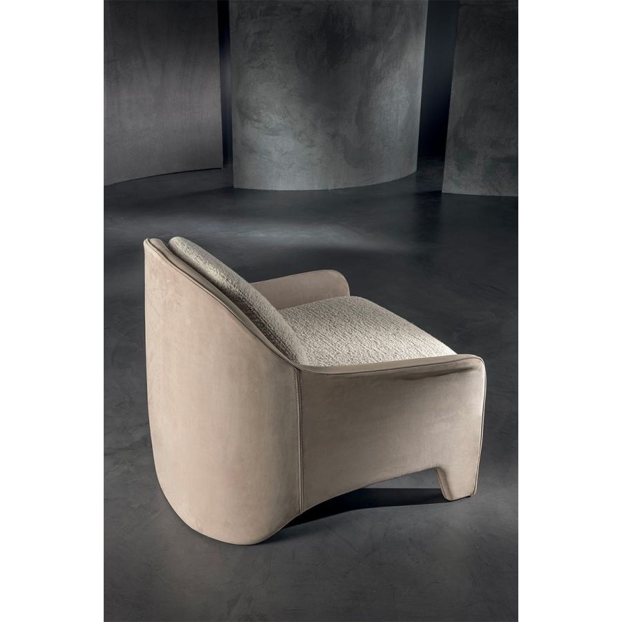 The load-bearing structure of this armchair is made with an innovative technology that uses POLIMEX®. This is a poly-bonded material that combines polyurethanes with high mechanical resistance and multi-density polyurethane foams in a single material that can guarantee high structural resistance, reduced weight, and unmatched comfort. In addition, POLIMEX® has low environmental impact, since it is 100% recyclable.The seat cushion is in wood covered in triple-density polyurethane foam. The backrest cushion (of the high armchair) is in medium density polyurethane foam upholstered with a white bonded resin cover. The upholstery of the structure and seat are NOT removable, but the fabric and leather covers of the armchair backrest can be removed.
