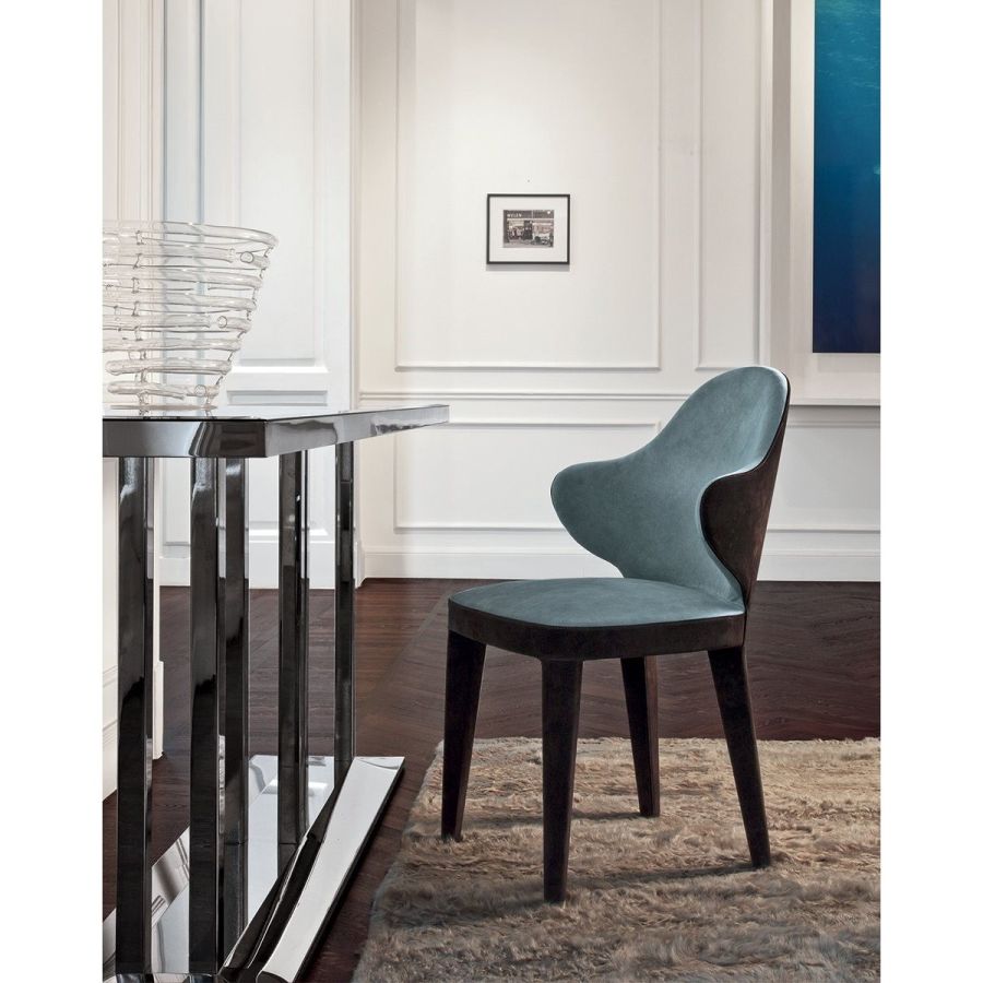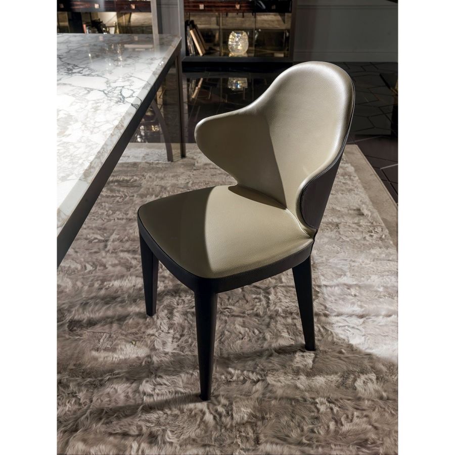 The Miss chair has light volumes, a dynamic profile and a definite structure design. The chair is entirely covered in leather, a contemporary project attentive to comfort, generous in the use of materials, and elegantly made.