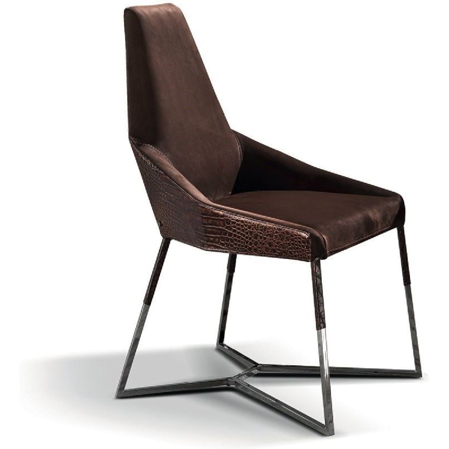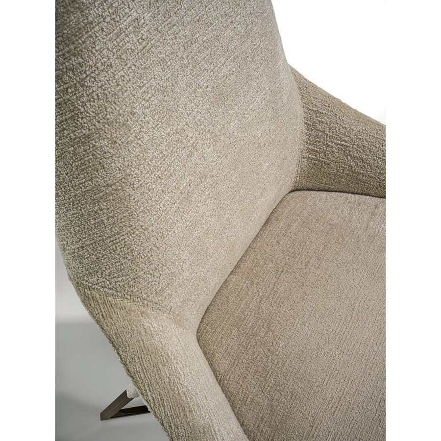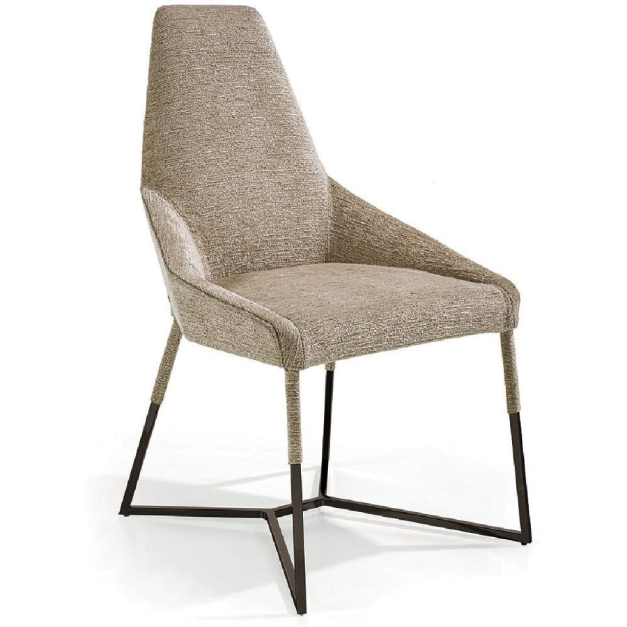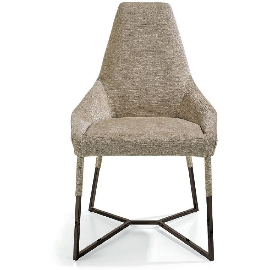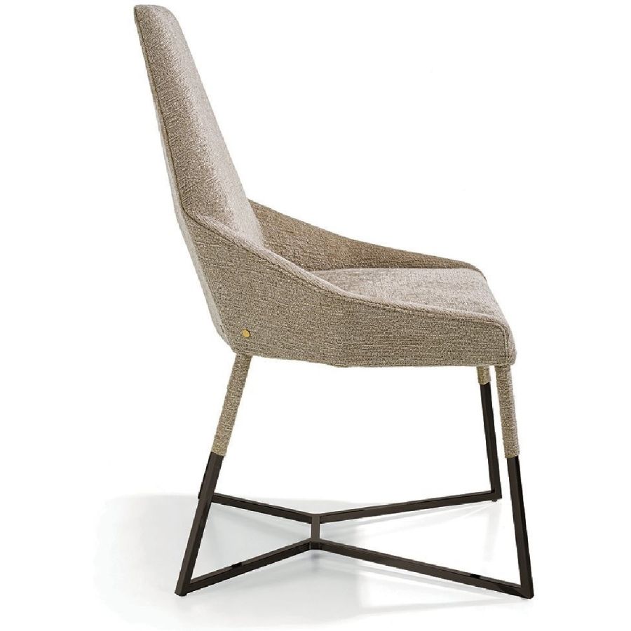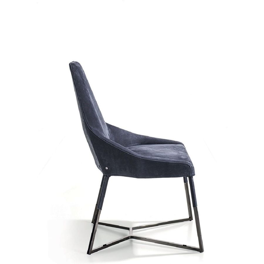 This important chair with an enveloping shape that distinguishes its strong personality, can add style and elegance to any room and create a harmonious composition with all of the chairs in the Longhi collection. Its “spatial” lines recall those of the Nobu sofa and the Aoyama armchair. Miu sets on simple tapered metal legs, and can be made with a plain or dual coloured cover, to create a pleasant contrast between the materials.