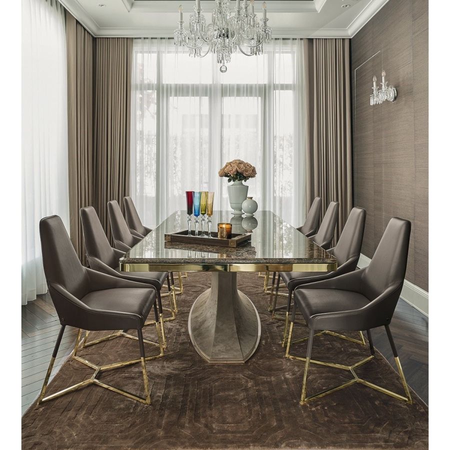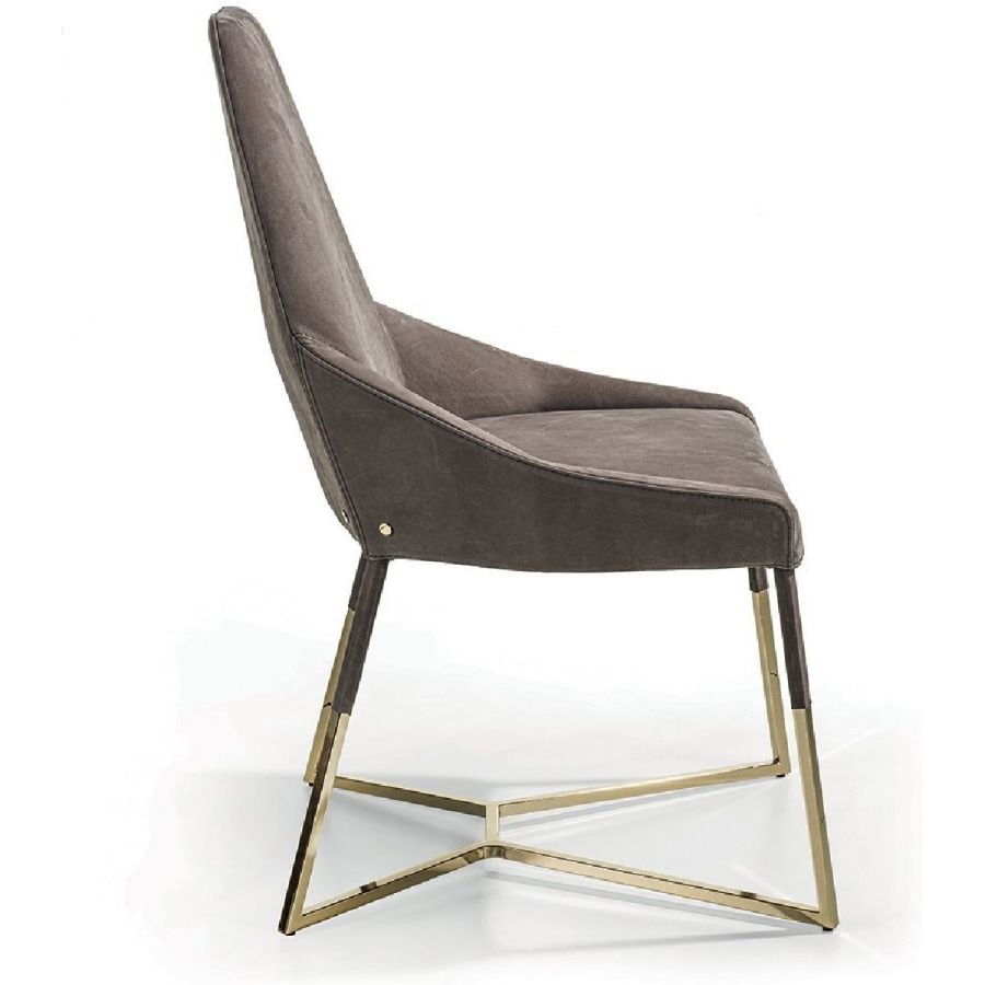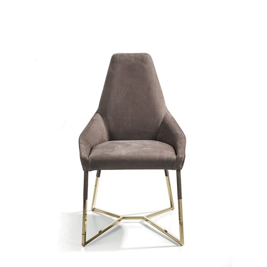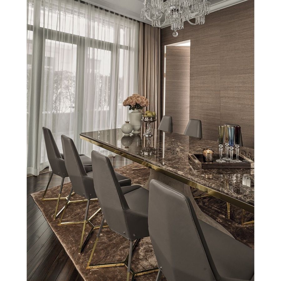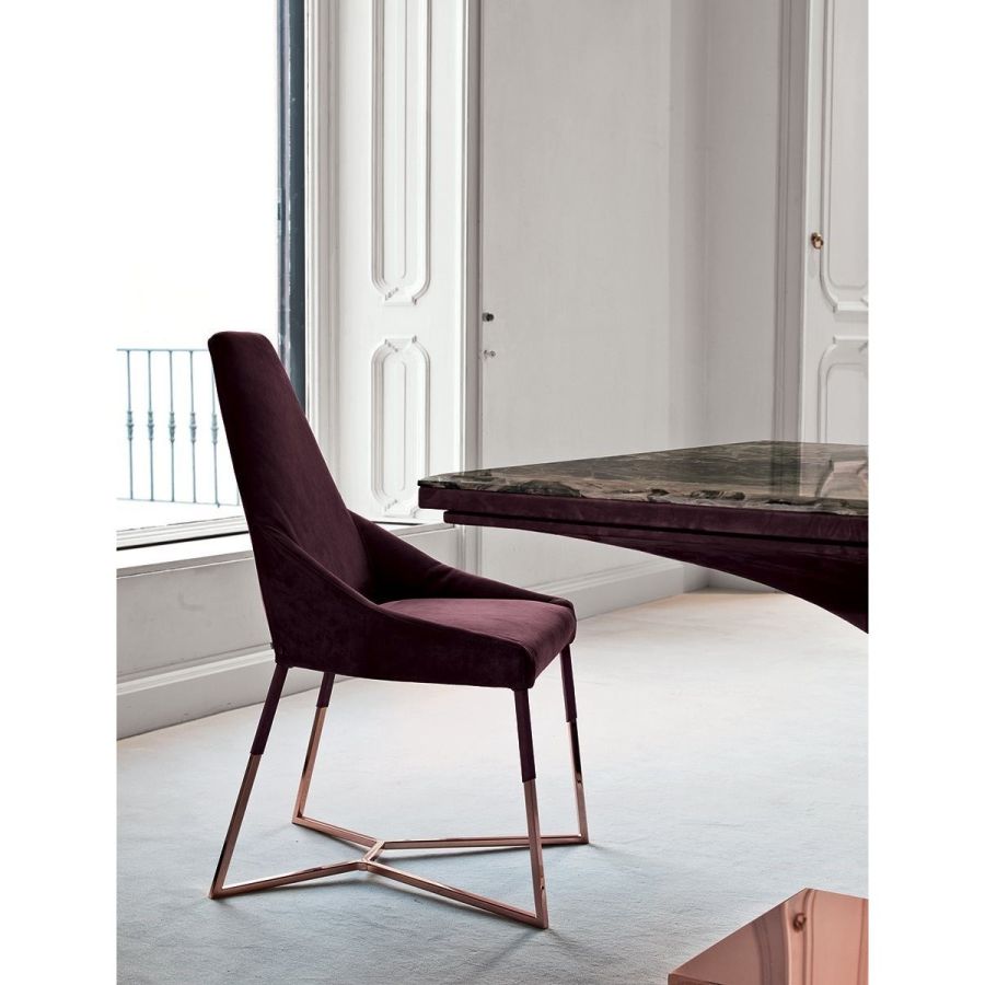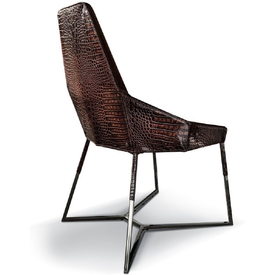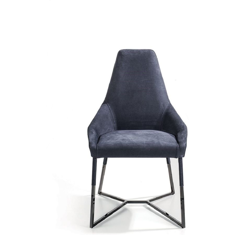 This important chair with an enveloping shape that distinguishes its strong personality, can add style and elegance to any room and create a harmonious composition with all of the chairs in the Longhi collection. Its “spatial” lines recall those of the Nobu sofa and the Aoyama armchair. Miu sets on simple tapered metal legs, and can be made with a plain or dual coloured cover, to create a pleasant contrast between the materials.