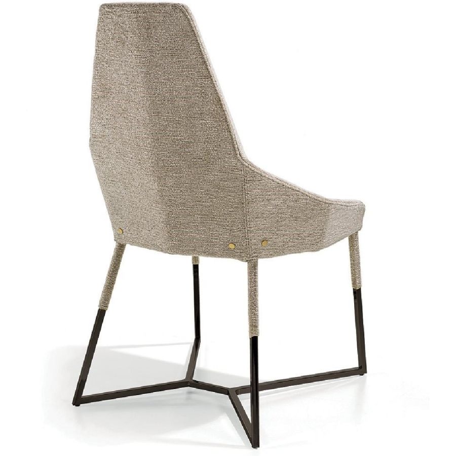 Iron frame cold-moulded in high-density foam. Non-removable fabric upholstery. Fixed metal base, finishes:Satin nickel, bright shaded brown, Black Rose gold, bright light gold, matt Champagne gold, bright chrome, bright black chrome, matt satin bronze, bright pink gold, matt pink gold.