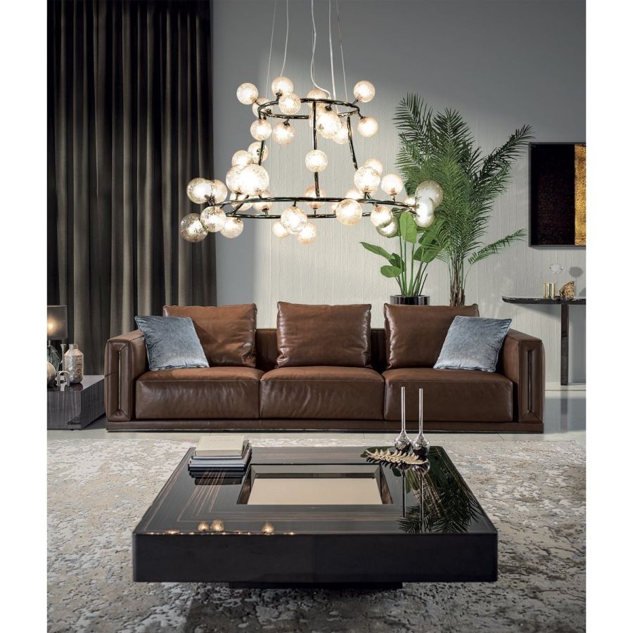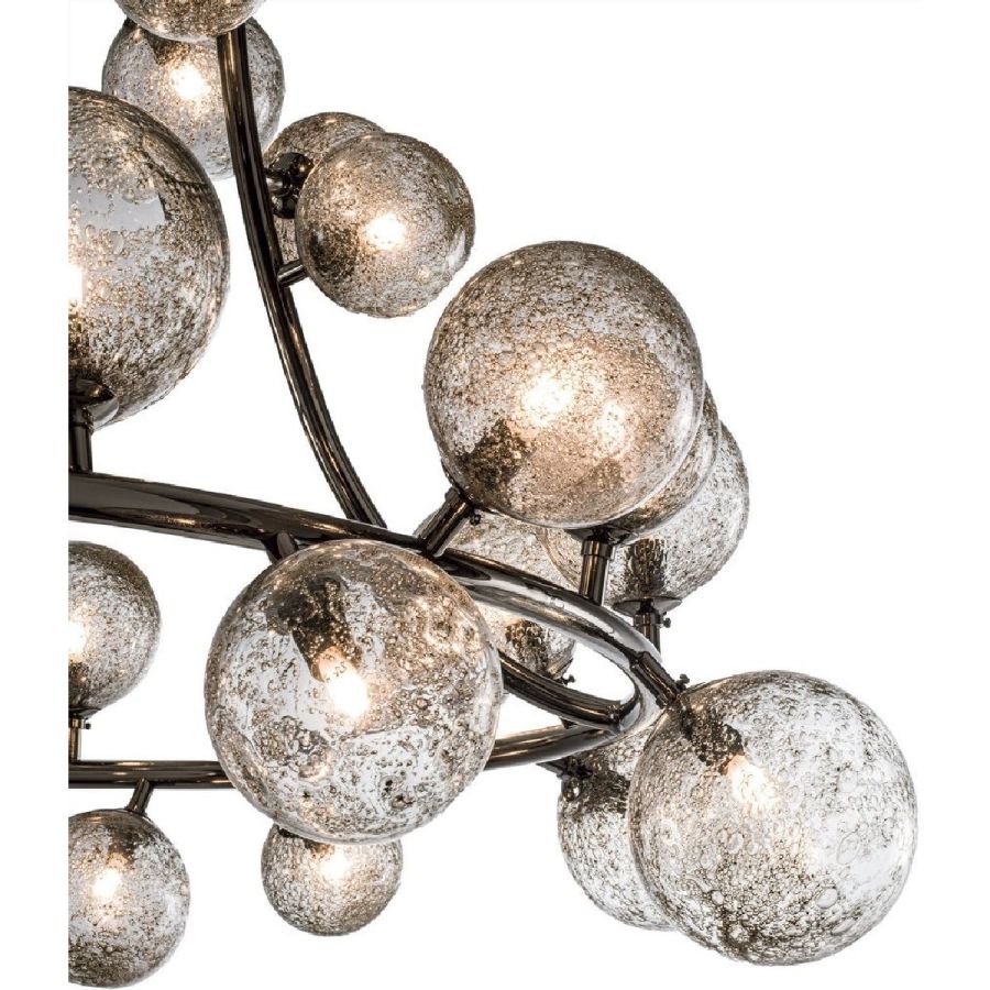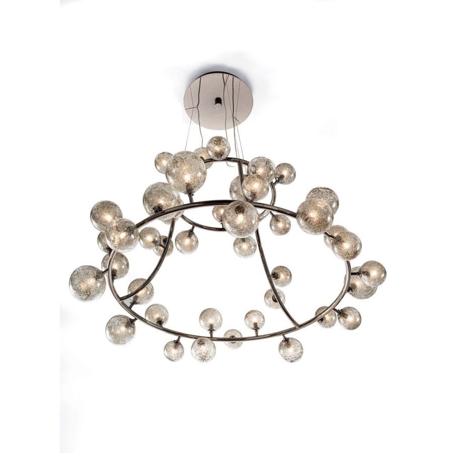 Round luminaire with metal structure in the galvanised finishes light gold and black nickel. Blown glass spheres in different sizes with inserts in gold mica and brass dust.Light source supplied: G9 LED 3W - 3000K 260 Lm - dimmable. Note: the light gold structure mounts exclusively glass spheres with gold inserts and the black nickel structure mounts exclusively glass spheres with brass powder.