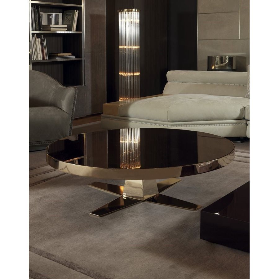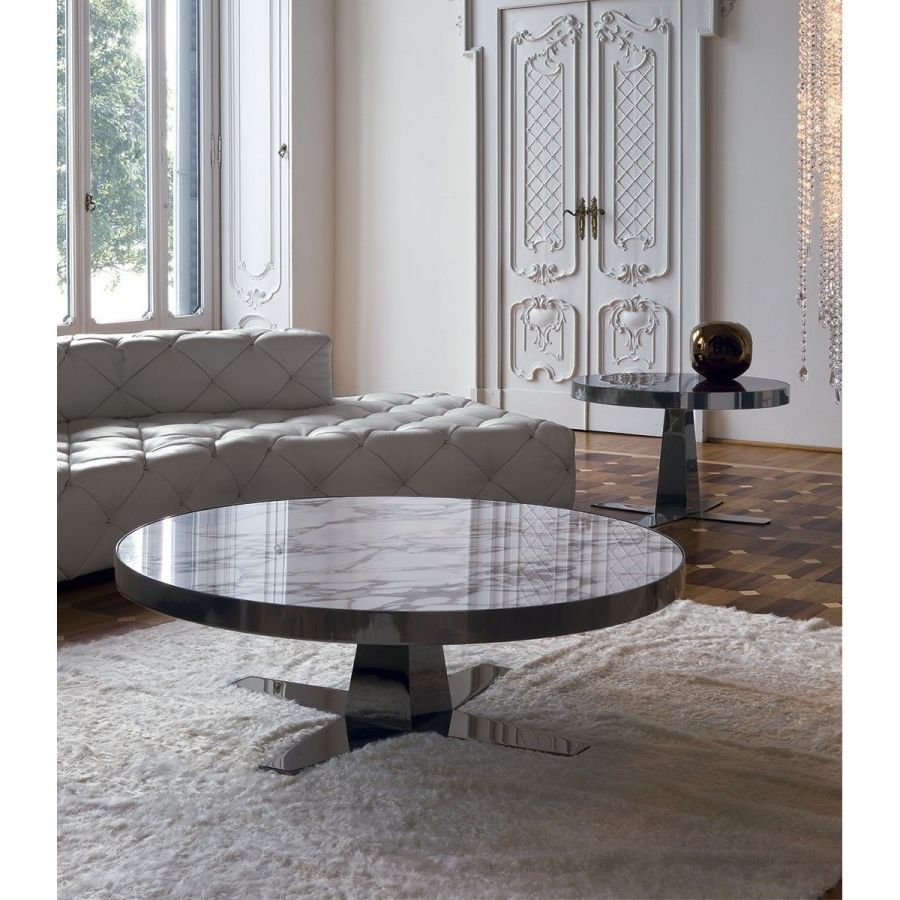 Small tables in laser cut ground metal. Frame finish: Satin nickel, bright shaded brown, Black Rose gold,bright light gold, matt Champagne gold, bright chrome, bright black chrome, matt satin bronze, bright pink gold, matt pink gold. Top finish: White Carrara marble, Imperial Brown marble, Sahara Noir marble (gloss yand matt polyester finish), Dover White marble, Panda White marble, Guatemala Green marble, Corteccia marble, Port Saint Laurent marble, Red Levanto marble, Bardiglio Nuvolato marble, Elegant Brown marble,Shale Rosewood marble, Emperador Dark marble, Silver Wave marble, Agatha Black marble, Frappuccino marble, Calacatta marble, Fusion Light marble, Patagonia marble, Explosion Blue marble, Fusion Multicolor marble, Juliet Quartz marble, Calcite Azul marble, painted black crystal 6 mm, bronze or smoky mirror6 mm, glossy lacquered wood in range colours, glossy/matt Maple, glossy/matt heat-treated Eucalyptus, glossy/matt Sycamore frisè, glossy/matt Ebony, glossy/matt Canaletto walnut.