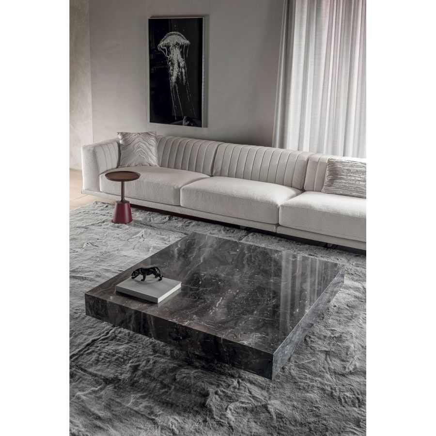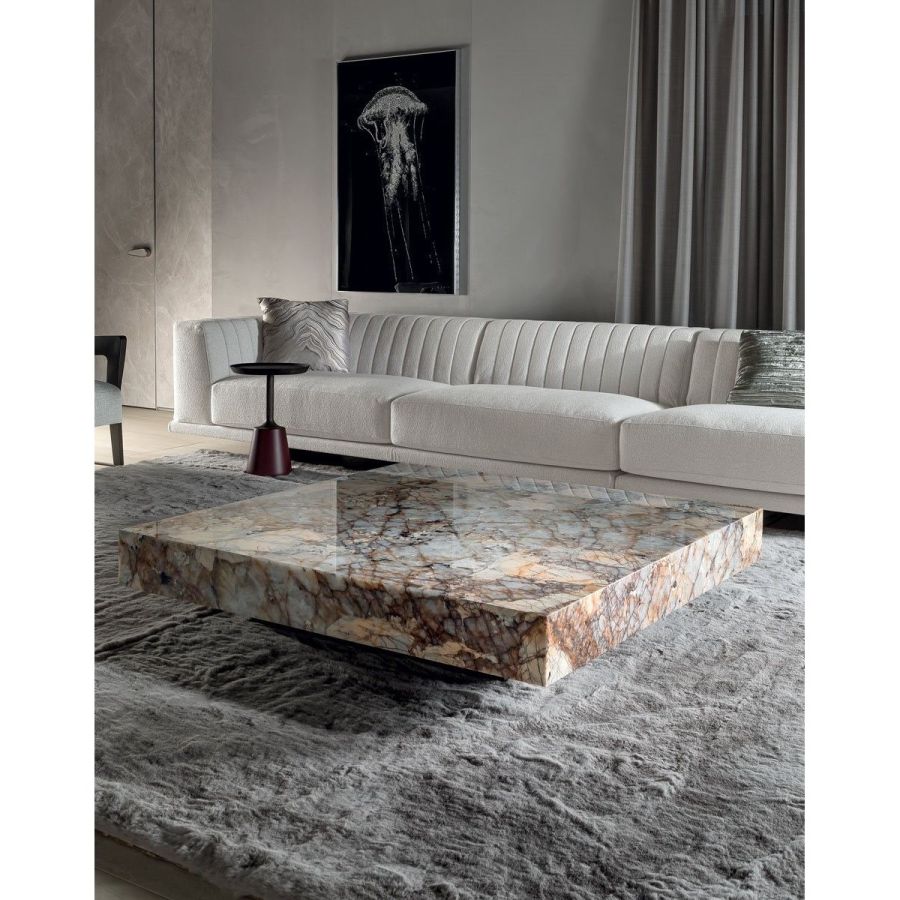 A square, one-piece table, entirely in boxed marble. Formal volume, geometric with strong yet minimal architecture, perfect for integrating in living rooms with different styles.