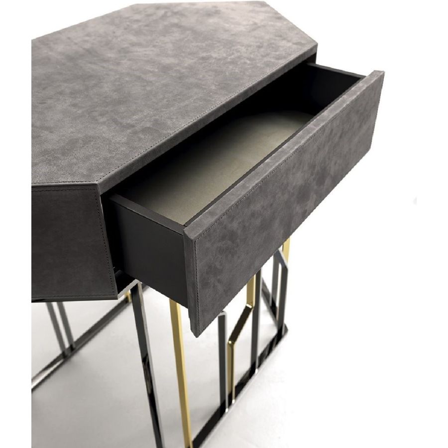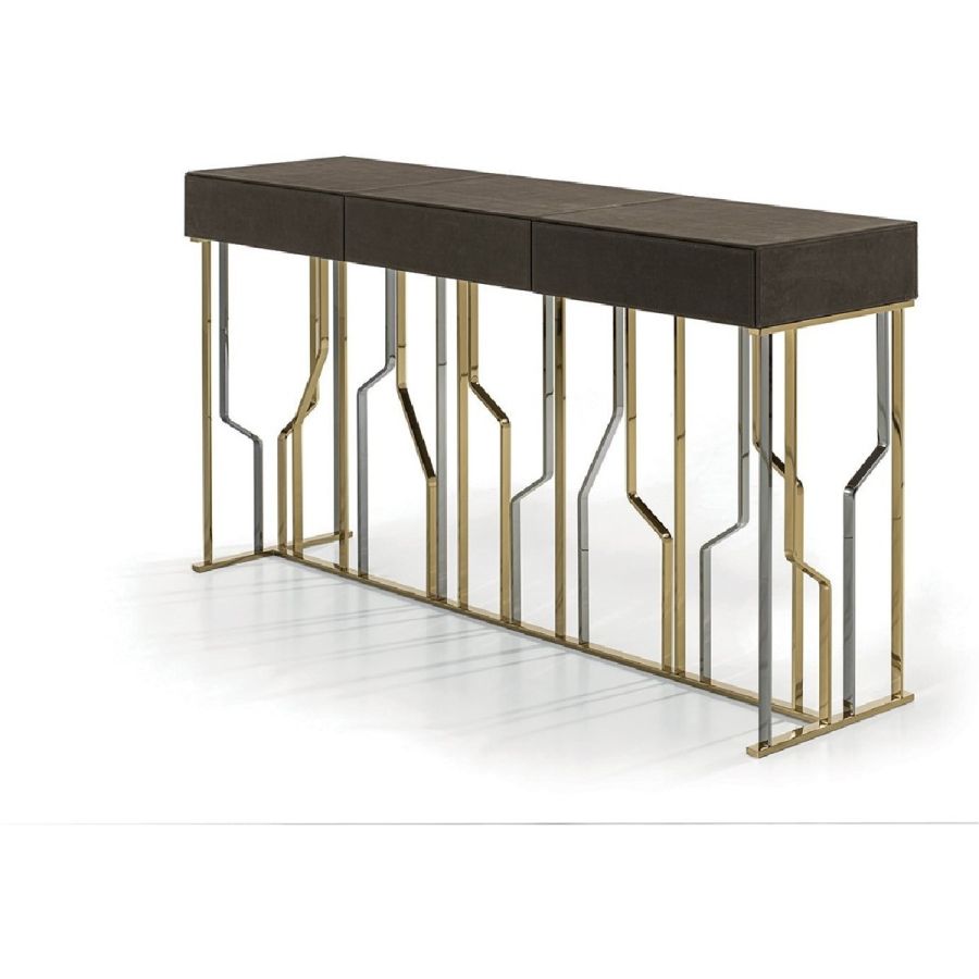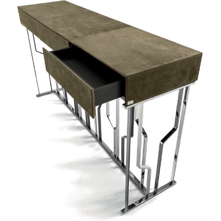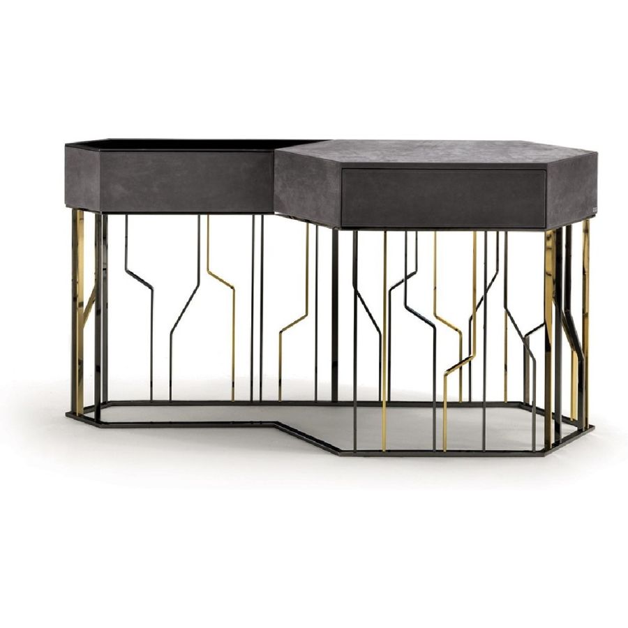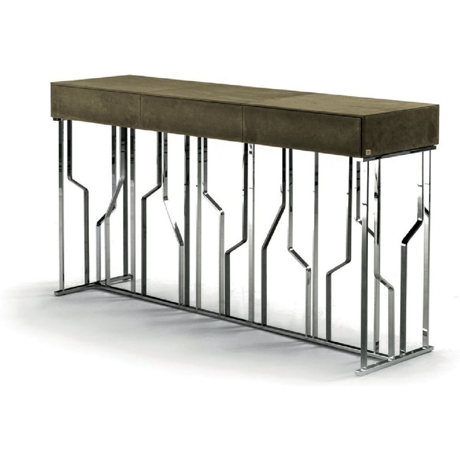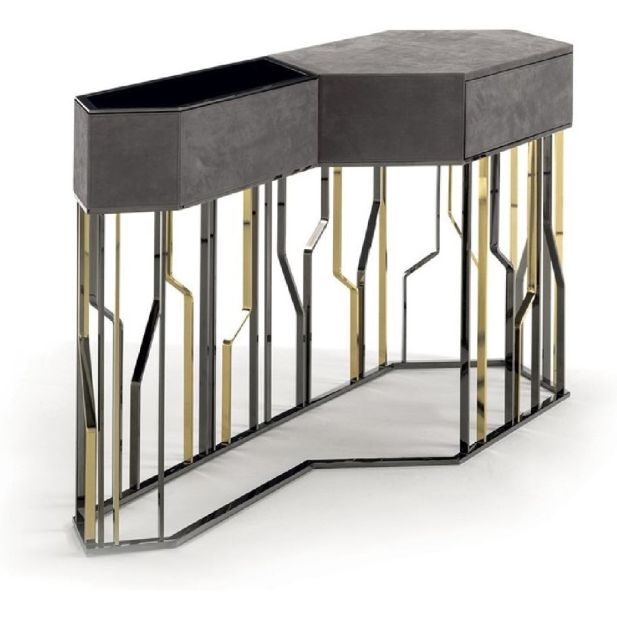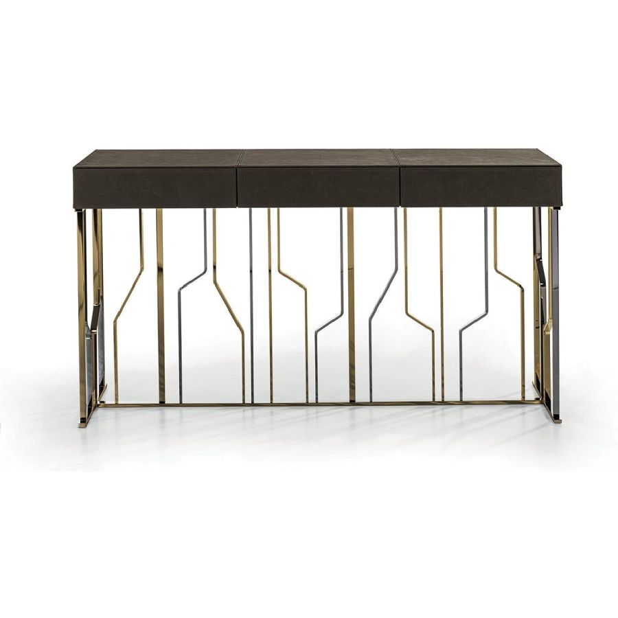 The evolution of the Ginza console, created to form a lively, dynamic dialogue with the other elements in the collection. Two variants are available: one with only three simple drawers and the second with a front drawer and an open bottle-holder area with a sharp-cornered shape. The strongly characterising design of the base allows the GinzaEvo console to play a leading role in any room.