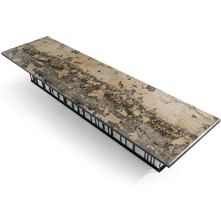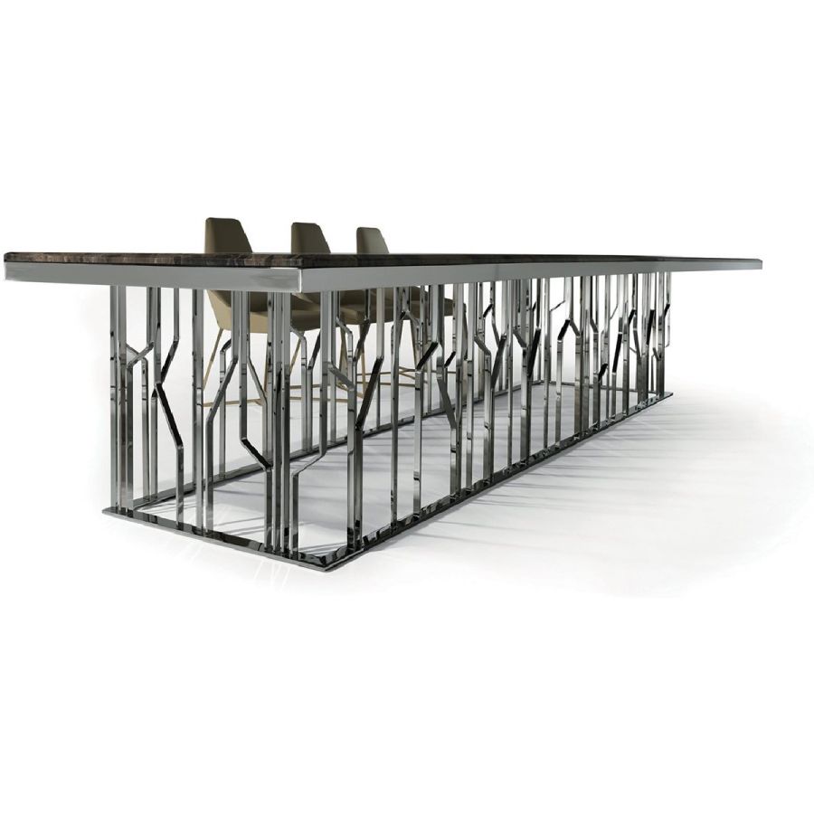 Metal base, available in: Satin nickel, Bright shaded brown, Black Rose gold, bright light gold, matt Champagne gold, bright chrome, bright black chrome, matt satin bronze, bright pink gold, matt pink gold.two-tone finish, upon request. Top finish: Marble of 20 mm. thickness with 20 mm. bevelling: White Carrara marble, Imperial Brown marble, Sahara Noir marble (glossy and matt polyester finish), Dover White marble,Panda White marble, Guatemala Green marble, Corteccia marble, Port Saint Laurent marble, Red Levanto marble, Bardiglio Nuvolato marble, Elegant Brown marble, Shale Rosewood marble, Emperador Dark marble,Silver Wave marble, Agatha Black marble, Frappuccino marble, Calacatta marble, Fusion Light marble,Patagonia marble, Explosion Blue marble, Fusion Multicolor marble, Juliet Quartz marble. bronze or smoky mirror 6 mm, painted black crystal, 10 mm thickness with bevelling.