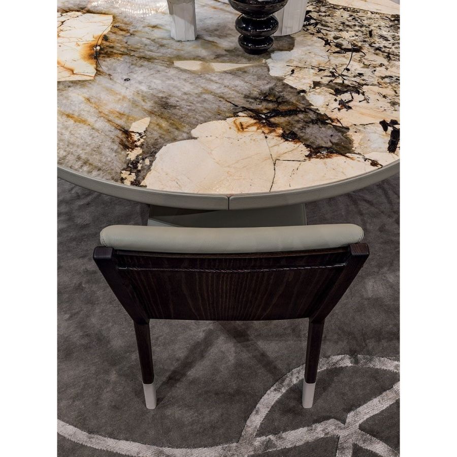 Re table stands apart for its exceptionally precious materials. The marble veins are framed by a refined leather-lined body. Flowing lines and seams produced by the expert hands of skilled craftsmen make this a unique item designed to enhance any room with personality.