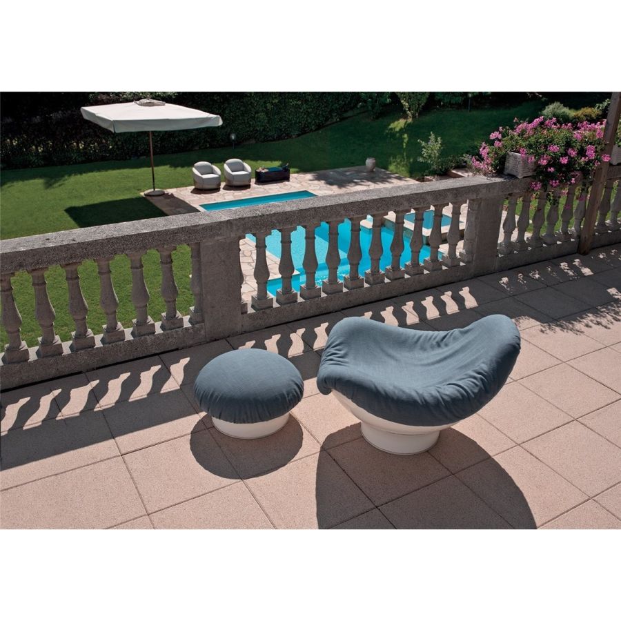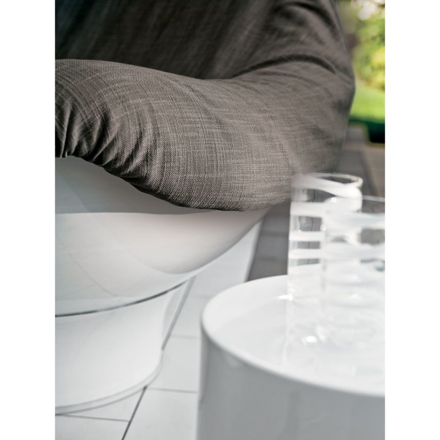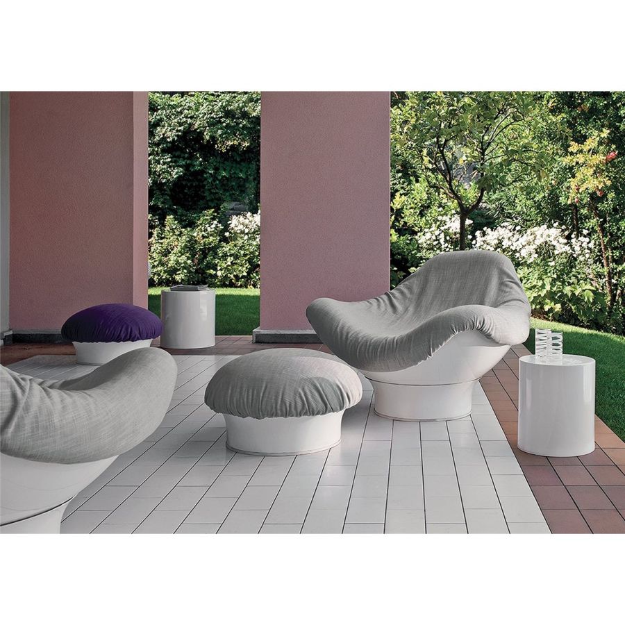 The configuration of the armchair has the same ergonomic characteristics as an egg shell - it moves and swivels. In fact, the movement of the upper part allows the user to find infinite sitting positions. Rodica has a fibreglass structure and a soft internal padding with a generous, enveloping shape, particular details for an armchair that reveal the personality of an outdoor centrepiece. It continues to be very successful even though it was designed in the early 1960s.