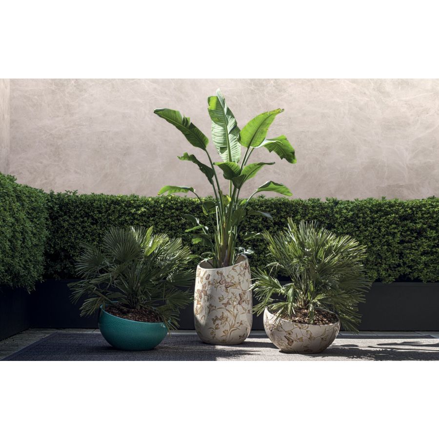 The Artemisia vases are perfect for enhancing outdoor spaces with a touch of style and originality. Available in two heights, these plant and flower cachepots are made of glazed ceramic, designed to withstand the elements, and can be customized in solid colors selected from a curated palette or hand-decorated with two exclusive illustrations, unique to each piece. Ideal for outdoor use, the Artemisia vases offer the perfect combination of functionality and beauty, adding an elegant and original accent to any exterior environment.