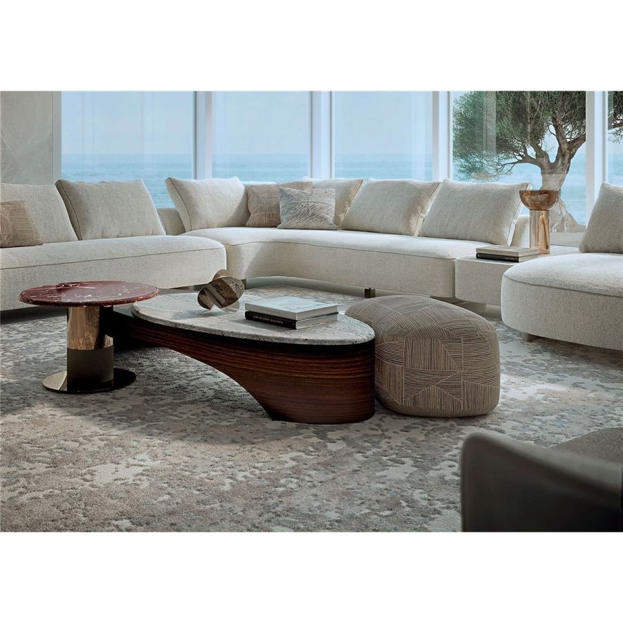 The design of this curved piece of furniture embraces the elegance and fluidity of its forms. Its shape makes it perfect for use with the Gregg and Leda small tables, and it conveys a sense of harmony to the rooms where it is placed.