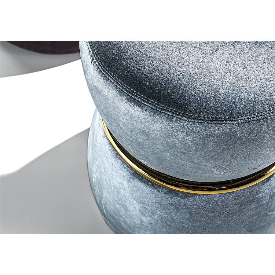 A pouf in the characteristic shape of an hourglass, with a unique, chrome-plated metal ring insert.