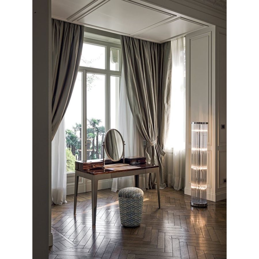 An essential object with a decisive personality: Teo can wear any type of upholstery with style and elegance. Fabrics, leathers and velvets from the exclusive Longhi collection come in a wide range of colours.