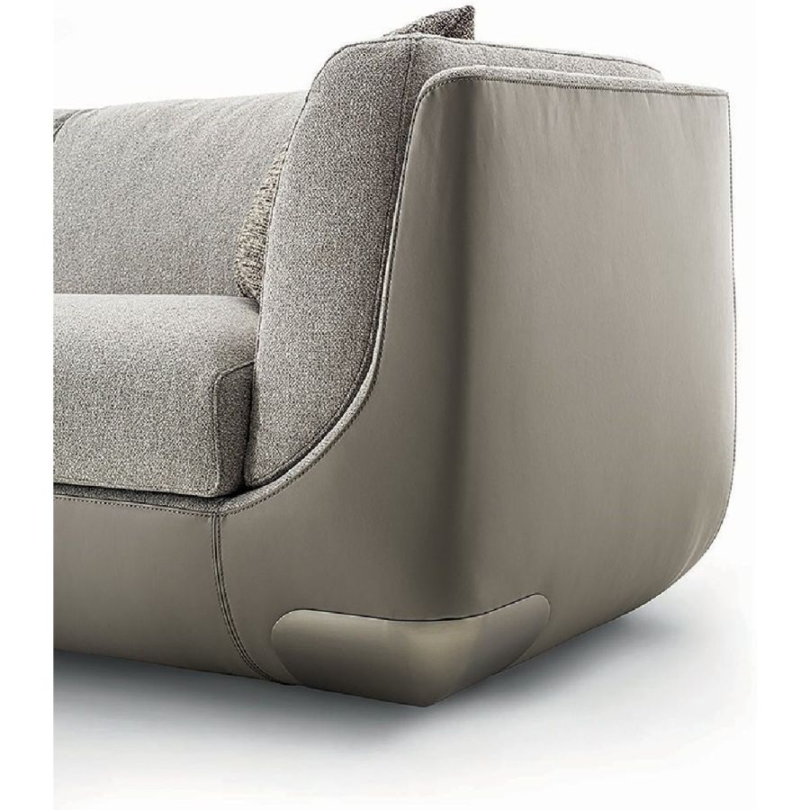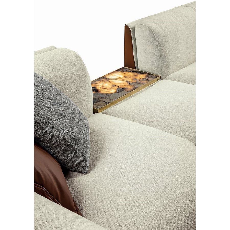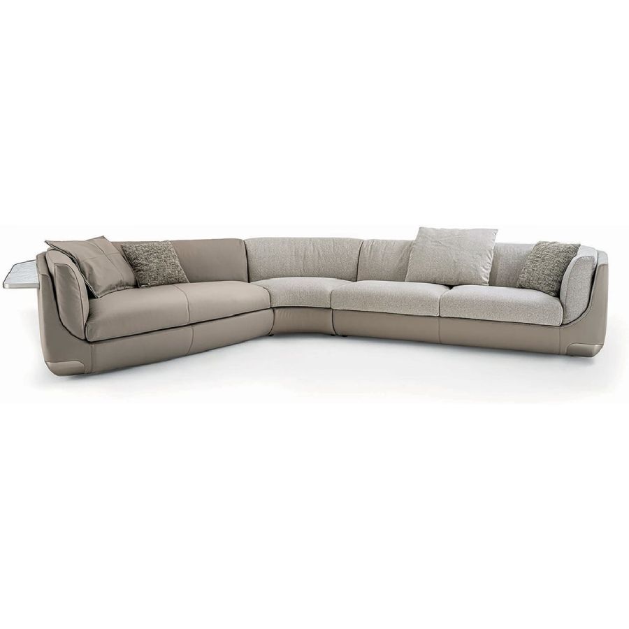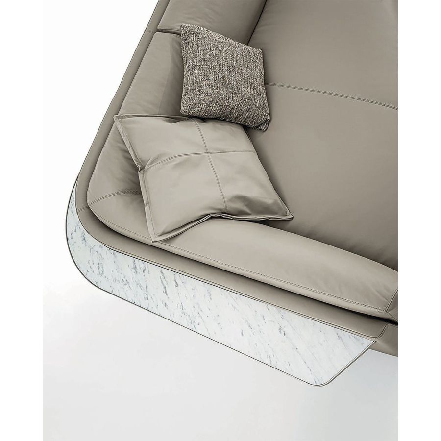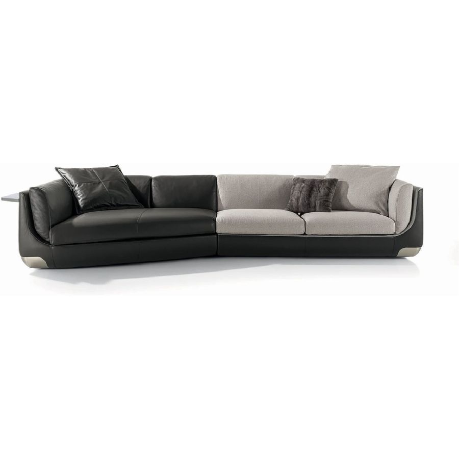 Soft volumes, contained proportions and curved lines. Bravery emerges from the desire to create a seating system that follows the free impulse of curved, enveloping lines while still maintaining its clearly formal rigour. The system comprises linear and curved seating elements with combined backrest and armrest cushions. The metal insert wrapped around the corner of the base is a distinctive feature. The limited seat depth makes Bravery the perfect solution for furnishing any small domestic space. Combining the variety of elements in this seating system with the small tables Levity and Balance make it easy to create open compositions with a fresh, informal personality.