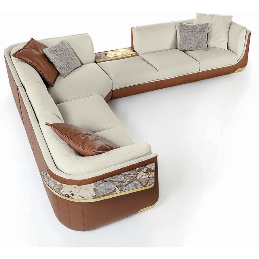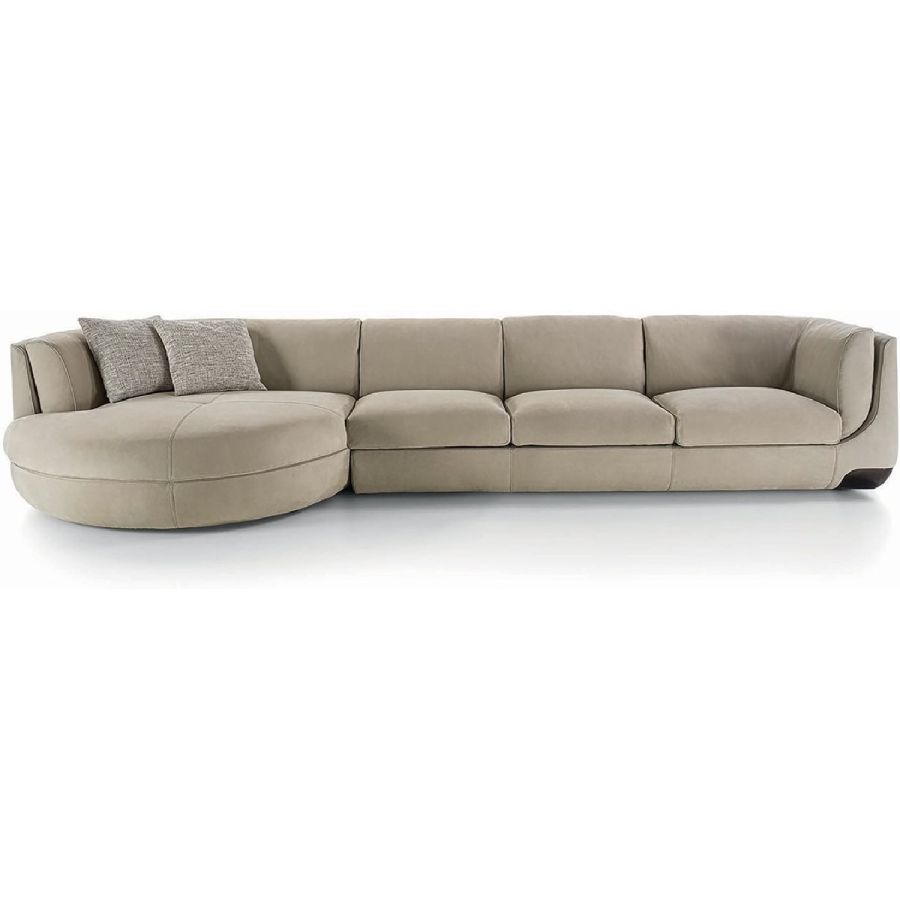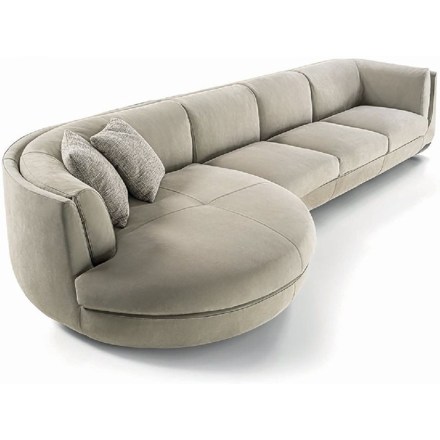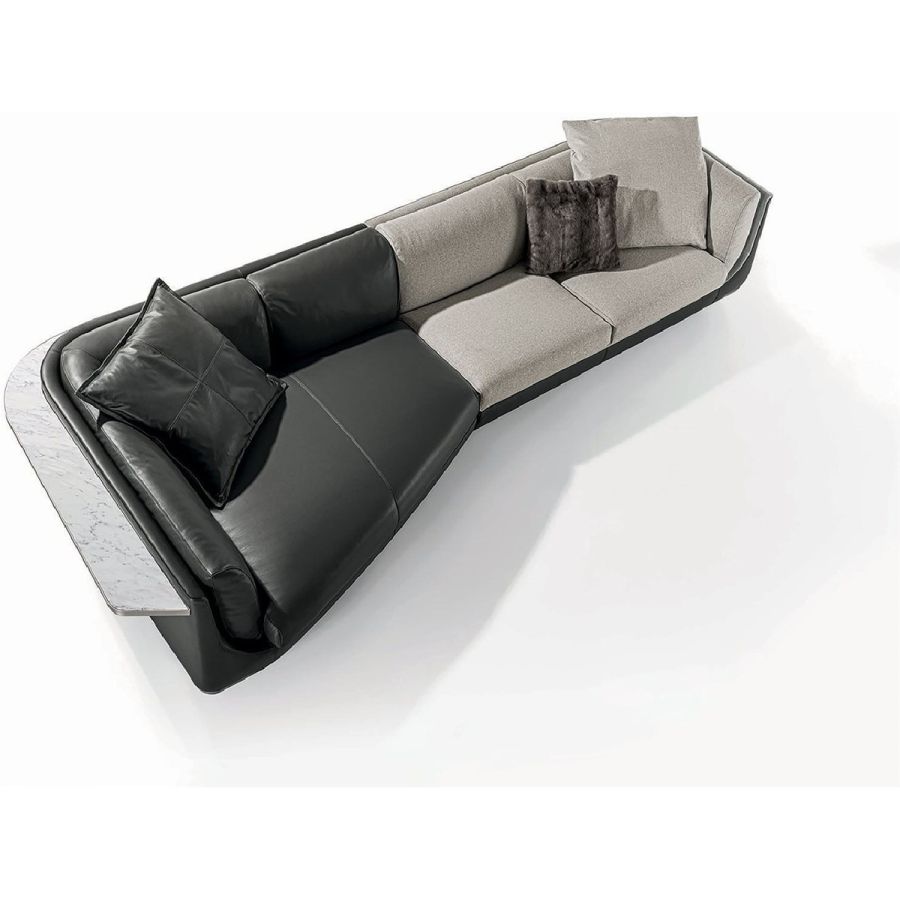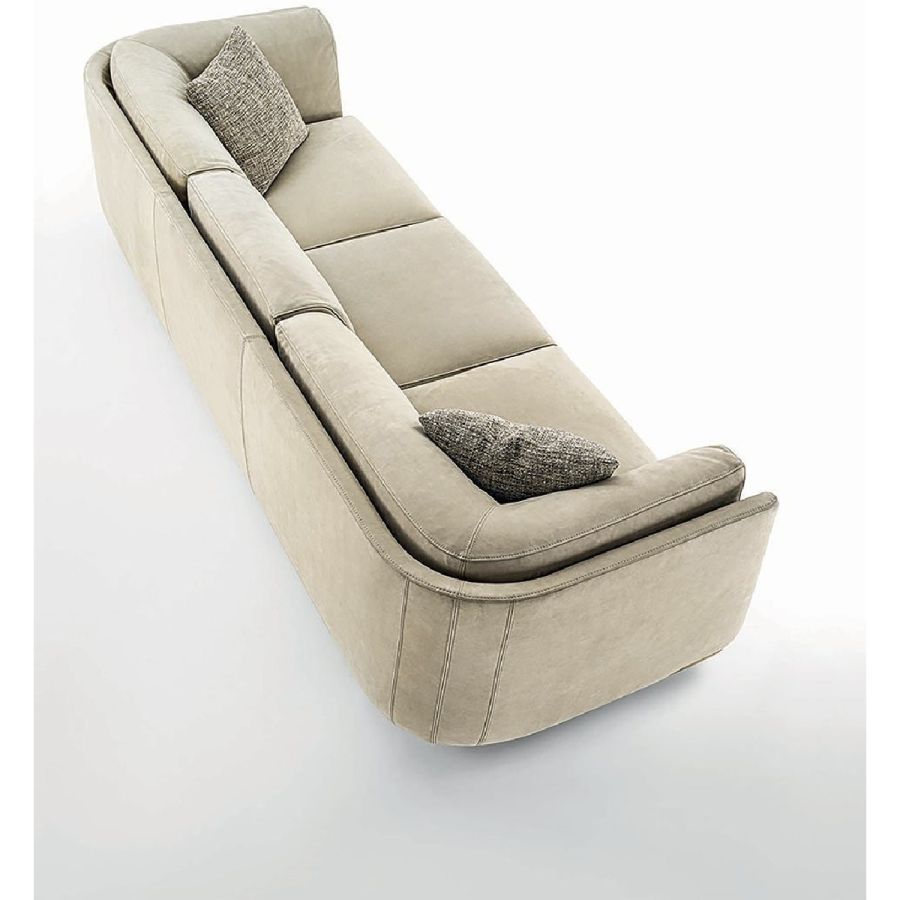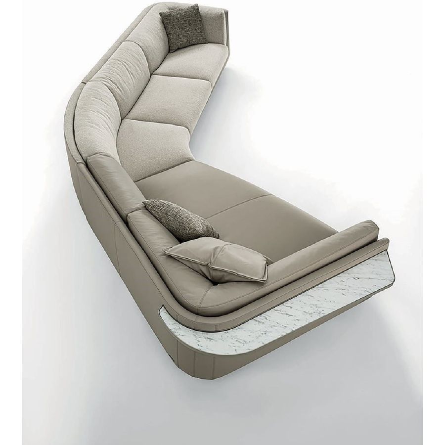 Soft volumes, contained proportions and curved lines. Bravery emerges from the desire to create a seating system that follows the free impulse of curved, enveloping lines while still maintaining its clearly formal rigour. The system comprises linear and curved seating elements with combined backrest and armrest cushions. The metal insert wrapped around the corner of the base is a distinctive feature. The limited seat depth makes Bravery the perfect solution for furnishing any small domestic space. Combining the variety of elements in this seating system with the small tables Levity and Balance make it easy to create open compositions with a fresh, informal personality.
