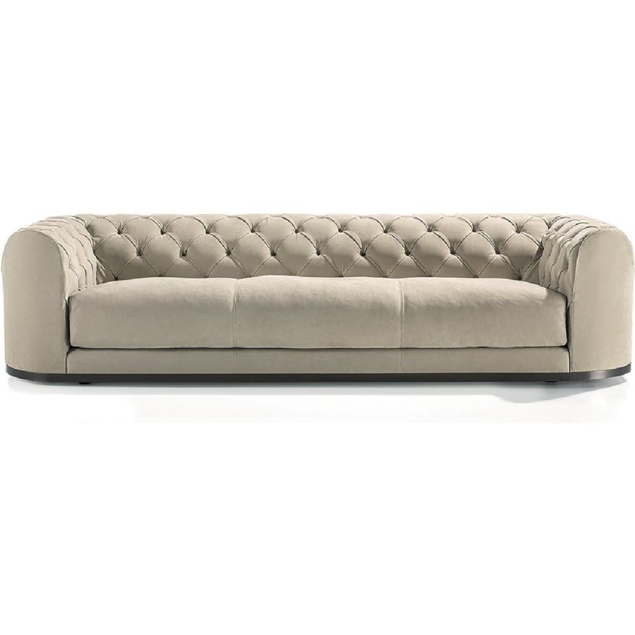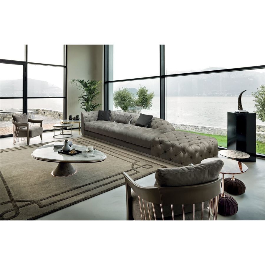 With a densely tufted “Capitonné” backrest upholstery contrasting with the smooth monobloc seat, the Milton sofa immediately attracts attention and transmits its ability to be a room centrepiece with a strong personality. Its charm derives from the elegant quilting and a design with soft, rounded lines, characteristics that make it contemporary, traditional and unusual - all at the same time.