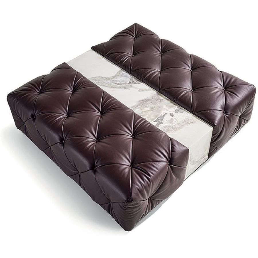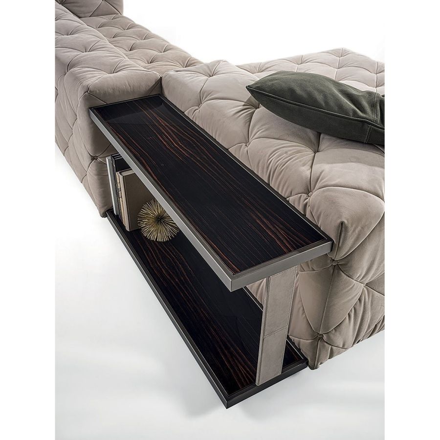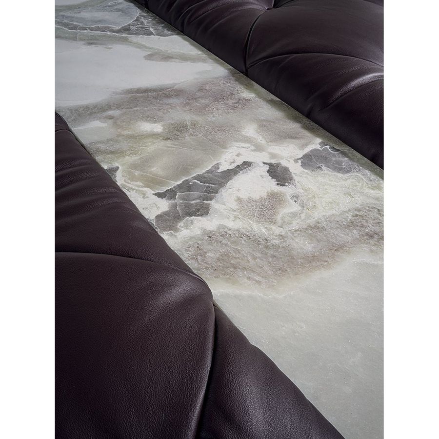 Load-bearing pine structure, covered with extremely high-density polyurethane foam in different thicknesses. Leather and fabric upholstery bonded with Dacron and assembled with “Capitonné” finish with buttons covered with the same material as the upholstery, or, alternatively, with “Swarovski” crystal buttons. The collection is made with double seat depth. The Must series features a wide selection of elements in addition to a small table and a console: - Square small table in wood from the catalogue with top in marble or backlit onyx with a metal frame. - Console with metal structure and columns finished like the structure or covered in leather and horizontal surfaces in wood, mirror, or marble from the catalogue. All sofas and end units can have the traditional high armrest, or a low version, on one or both sides to create pleasant volumes. The new Isola element, combined with the various available chairs, can create an array of furnishing solutions. Bases can be finished in bronze or black powder coating, or chromed in the following finishes: Satin nickel, bright shaded brown, bright light gold, matt Champagne gold, bright chrome, bright black chrome, matt satin bronze, bright pink gold, matt pink gold, Black Rose gold. Given the special manufacturing process, leather and fabric upholstery are not removable.