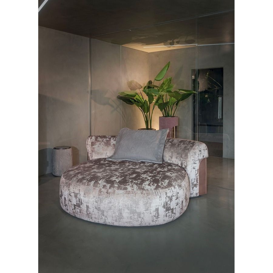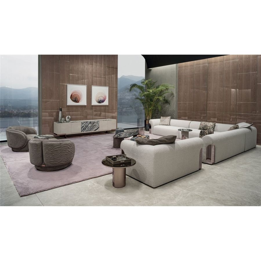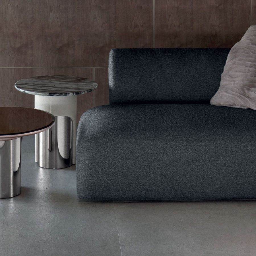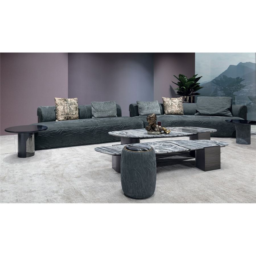 A sofa with a sinuous shape that recalls the female body. Made up of a number of elements, it guarantees maximum design freedom. The metal sheet set into the armrest lends elegance and refinement to the entire composition. Nip is a sofa with a one-piece seat, particularly ergonomic and comfortable thanks to its special padding. The front stripe can be featured by “Groove” quilting, an original animalier pattern.